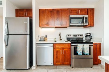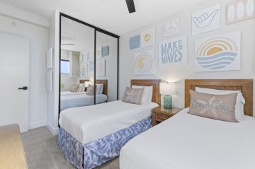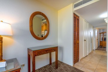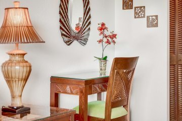 The roughly U-shaped main area of the complex is formed by 2 buildings. The vast majority of the units are in the 9-story tower that makes up most of the horseshoe. It holds studio to two bedrooms with floor plans of 507 to 1,507 Sq Ft of interior space. The lanai adds further space outside. A smaller, beachside 4-story building is made up of two bedroom condos, each with a lanai. The lower floor residences are all 1,078 Sq Ft interiors, while the 4th floor residences are 1,364 Sq Ft inside due to having an added loft area.