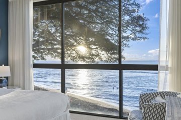 Many of the units in both buildings have views of the ocean, from partial to completely unobstructed, with just a few yards separating them from the waves.