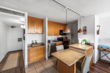 These residences are a mix of Fee Simple & Leasehold properties, the lease expiring in 2046. Central air-conditioning is in every unit in both buildings. Owners get at least 1 parking pass for the community’s lots. There are 3 pairs of elevators spread out across the main building and 1 elevator serving the shorter condominium.