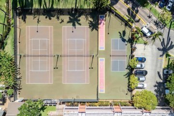 - Amenities: 2 Pools, 2 Hot Tubs, Sauna, Fitness Center, 2 Tennis Courts, Pickleball Court, BBQs.