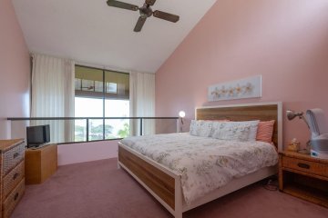 Building A Building A has eight condos in its three story structure - six two-story, two bedroom townhomes that take up the first two floors and two single-level, one bedroom units on the third, all with one lanai exterior. Upstairs in the two-bedroom layouts are both bedrooms and one bathroom. The townhomes also have a fenced-in lanai & garden area of their own on the ground floor level. Residences here each have one assigned parking stall that can be covered or uncovered. Building A residents have full use of the amenities on the main property.