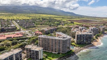 The Royal Kahana is an oceanfront condominium, the closest residences sitting only about 15 yards from the Pacific. This concrete building is V-shaped, with the base fronting onto the coastline and the two wings extending back toward the street.