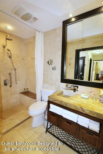 Gorgeous tropical foliage like red ti plants and ginger flowers create a paradisiacal environment while the oceanside lawn features loungers under shady palm trees. Residents and guests can enjoy the enclosed saltwater pool and adjacent barbecue area with two gas grills plus dining tables