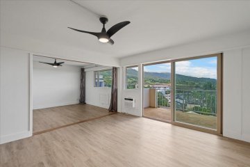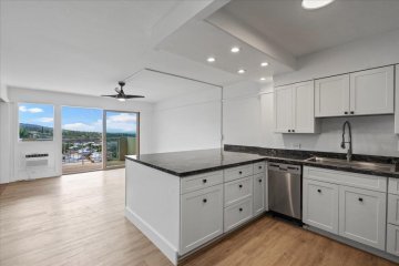 This intimate complex is made up of a concrete seven-story building with an elevator and commercial businesses on the ground floor. The 37 studios to two-bedroom units range between 425 and 730 square feet. Some of those on the higher floors boast stunning ocean views, while others overlook the lush mountains or city. Most condos feature a lanai to take in the gorgeous views and all have ensuite washer and dryer.