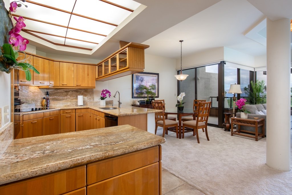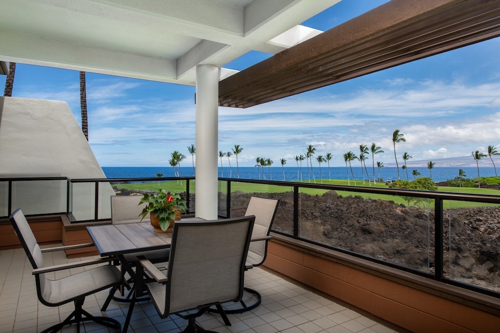 This exceptional one-bedroom top-floor condominium offers the perfect blend of privacy, luxury, and panoramic island beauty within the prestigious Mauna Lani Resort on the Kohala Coast of Hawaii. Thoughtfully designed with vaulted ceilings that enhance the sense of space and light, this residence features elegant mahogany doors, upgraded bathroom and fine finishes throughout, creating a refined yet comfortable tropical retreat.Positioned directly on the fairway, the condo captures sweeping views of the ocean, Kohala Mountains, and lush green fairways—an ever-changing canvas of natural beauty from sunrise to sunset. The covered lanai invites morning coffee or evening cocktails in a serene, elevated setting that feels worlds away from the everyday.Offered fully furnished, this turnkey property is ideal as a second home or an upscale vacation rental. Owners enjoy access to the world-class amenities of Mauna Lani Resort, including white sand beaches, two championship golf courses, a private Beach Club, the Auberge and Fairmont hotels, fine dining, spa, tennis, and scenic coastal trails. Whether you're seeking a low-maintenance island home or a sound investment in one of Hawaii’s most coveted resort communities, this residence offers an unmatched lifestyle and value.