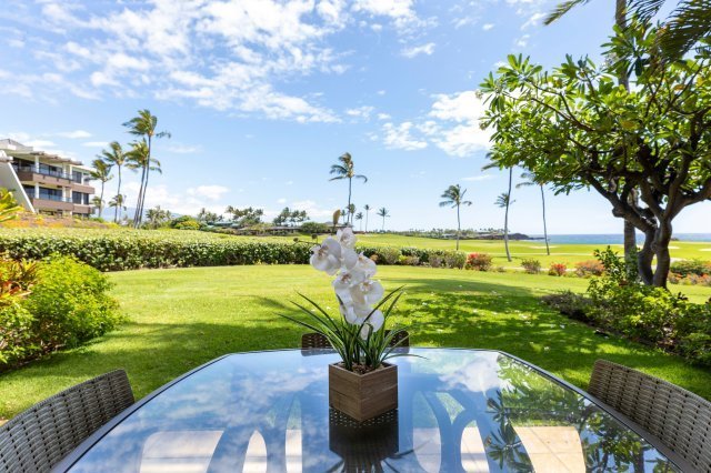Welcome to Paradise! This incredible renovated property has ocean, golf course and mountain views and is a lower-level 2-Bedroom, 2.5 Bathroom unit. Located at The Point, within the famous Mauna Lani Resort and overlooking the 13th green of the Francis H. I’I Brown Mauna Lani South course, this villa allows you to watch the golfers compete daily for their highest score. The commanding views stretch along the coast to Honokaope Bay’s black sand cove and beautiful sunsets beyond. The expanded great room is incredibly spacious. There are beautiful Koa wood cabinets, upscale stainless-steel appliances and a wine fridge. A few steps away lead you to your private covered lanai. This peaceful setting leads to a large, manicured lawn area to enjoy viewing the Humpback whales go by during their migration season or stargazing at night. The Primary Suite is very spacious and provides a sliding glass door leading out to the lanai. The en-suite bathroom has dual vanities a soaking tub or walk in shower. There is plenty of cabinet space as well as closets in the bedroom area. The Guest Bedroom is also very spacious and has a calming tropical view and feel. The Guest Bath provides a walk-in shower using stone and glass. There is a beautifully decorated powder room just off the kitchen area. The laundry area inside the villa has a full-size washer/dryer located behind louvered doors. There is a designated covered parking spot as well as guest parking available. Mauna Lani’s most desirable oceanfront condo community, the Point, offers an amenity center a few steps away from this building. Enjoy the free-form pool, jacuzzi, sauna, outdoor showers, and plenty of comfortable seating areas. The entertaining area has BBQ’s a kitchen and dining areas. As owners you and your guest have access and privileges of the private Mauna Lani Beach Club, which boasts one of the best snorkel spots on the island and a protected sandy cove. Nearby are 2 world class golf courses, shops & restaurants.