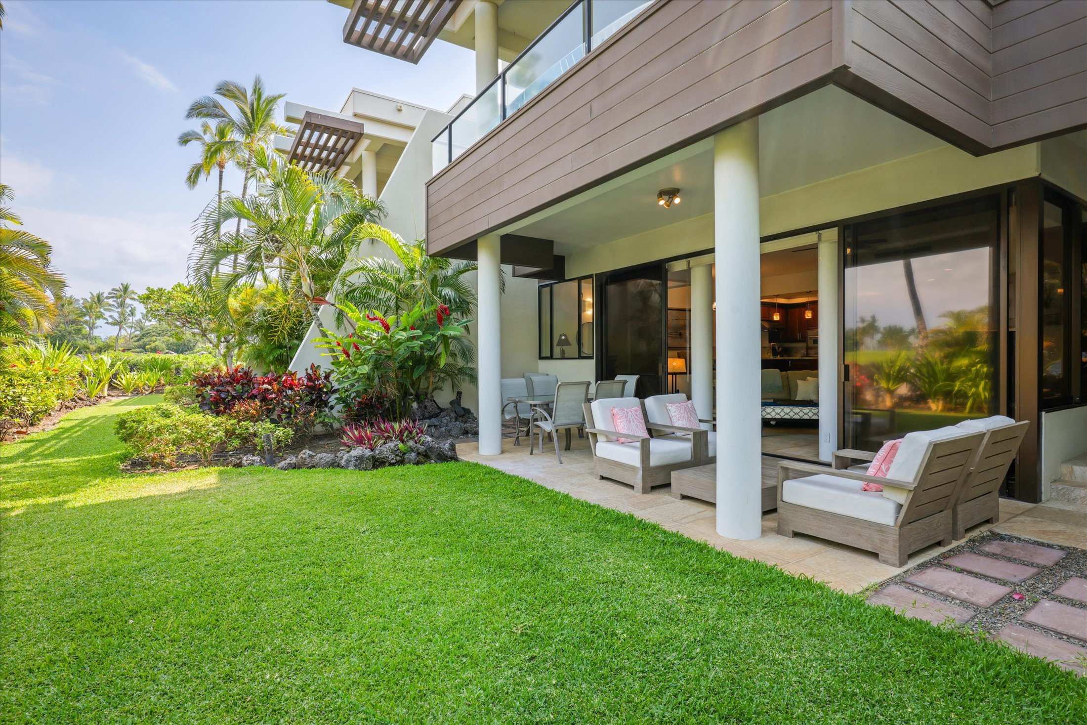 Welcome to Unit J107 at Mauna Lani Point, a newly refreshed end unit 2 bedroom 2.5 bath condominium located within the oceanfront community of Mauna Lani Point, one of the Big Island’s most prestigious resort enclaves. This desirable residence offers scenic views of Mauna Kea, the golf course, and lush tropical landscaping, with enhanced privacy and natural light unique to an end unit location.The open concept floor plan is designed for comfort and effortless indoor outdoor living, featuring central air conditioning, ceiling fans throughout, and tasteful island inspired finishes. The newly refreshed interior includes updated kitchen and bathrooms, complemented by professional tile cleaning throughout for a bright, move in ready presentation. The spacious living area opens to an expansive lanai, ideal for dining, relaxing, and enjoying the surrounding island beauty.The primary suite features an en suite bath with dual vanities and a walk in shower. The guest bedroom includes its own bathroom and generous closet space. A convenient half bath and an in unit washer and dryer complete the interior.Mauna Lani Point offers oceanfront amenities, including a private pool and spa, scenic coastal walking paths, and access to the exclusive Mauna Lani Beach Club. Championship golf courses, shopping, dining, and resort services are all nearby within Mauna Lani Resort.Currently operating as a successful short term vacation rental, this property is ready for new owners to take over, offering an excellent opportunity for investment, second home ownership, or full time resort living.
