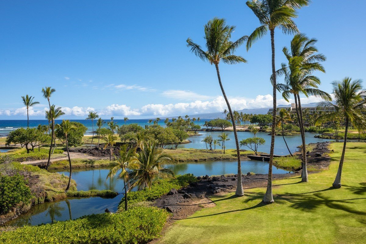 Mauna Lani Terrace is a gated, oceanfront community surrounded by water features. 8 of the 11 buildings sit on a lagoon, while an Ancient Hawaiian fishpond lies between the property and the shoreline. The southern side of the community is bordered by two more fishponds.