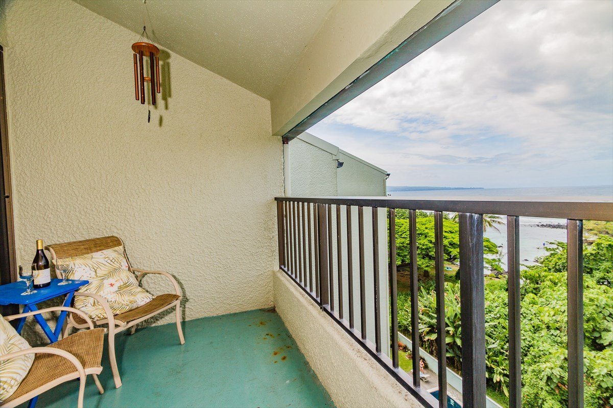 Premier Hilo location with only beautiful Carlsmith Beach Park between you and the ocean. This is a 2 bedroom, 1 bath penthouse unit with amazing ocean and Mauna Kea views. The open concept kitchen has been updated with granite tile counters and breakfast bar and includes refrigerator, electric range and dishwasher. The living room has vaulted ceilings and opens out to the lanai with breathtaking views of the Pacific and overlooking the swimming pool. There are 2 nicely sized bedrooms; the master overlooks the ocean and the second bedroom has views of Mauna Kea and the gorgeous Lokowaka Pond across the street. The bathroom has been updated with a decorative ceramic tile surround, newer cabinetry and pedestal sink. Maunaloa Shores has an inground pool and keyed elevator for security. Carlsmith Beach Park is just next door with a County life guard and easy access to the ocean. This location is also just minutes drive to Downtown Hilo and the Hilo Int. Airport. The association fees include County water, electric, sewer, basic cable, building insurance, and property management. Seller reserves the right to participate in a 1031 exchange.