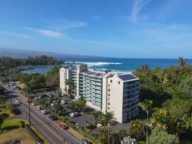 Penthouse, top floor. Fantastic opportunity to own your slice of paradise steps from the beach, 10 minutes from Hilo airport, minutes to shops. Next to Carlsmith Beach Park. Enjoy your lanai with breezes. Ocean and Sunset views. Amenities include swimming pool, storage area. 2 pets allowed. Assn fee includes electric, basic cable, water, trash, building maintenance, gas, grounds, pool and more. Will not last!!! Bring all offers!!! Seller will consider paying towards buyer's closing costs and towards buying down loan rate for buyer/s.