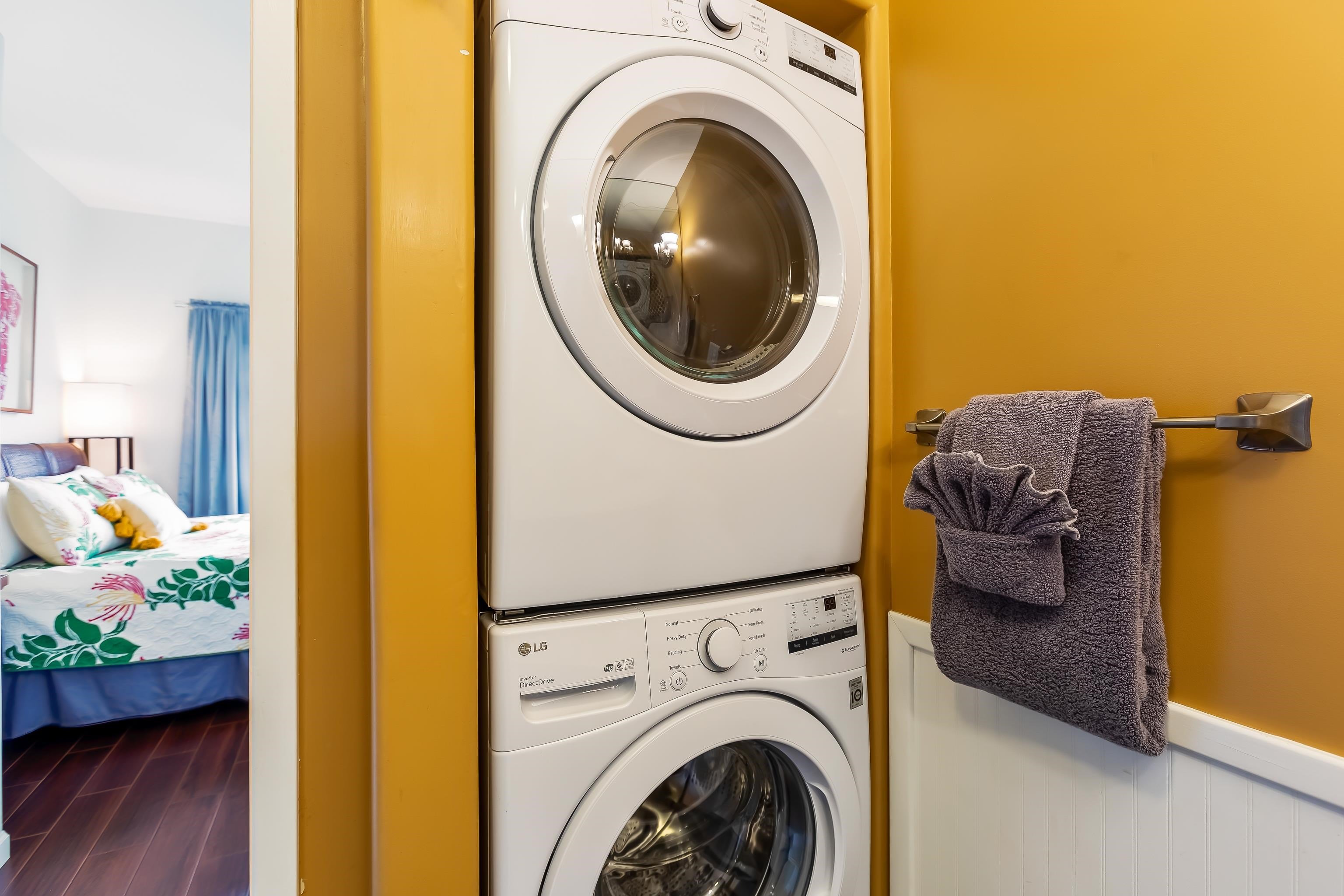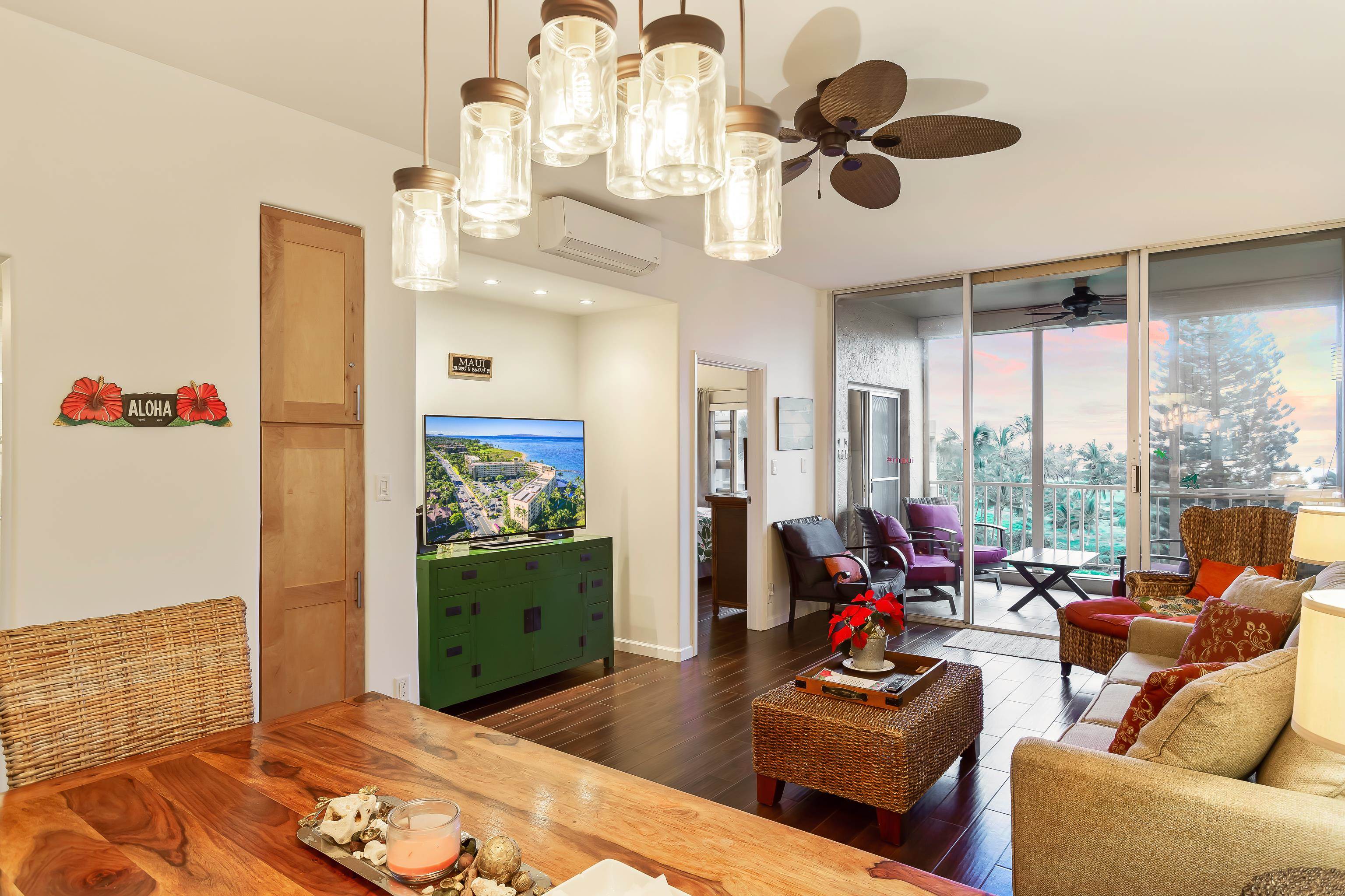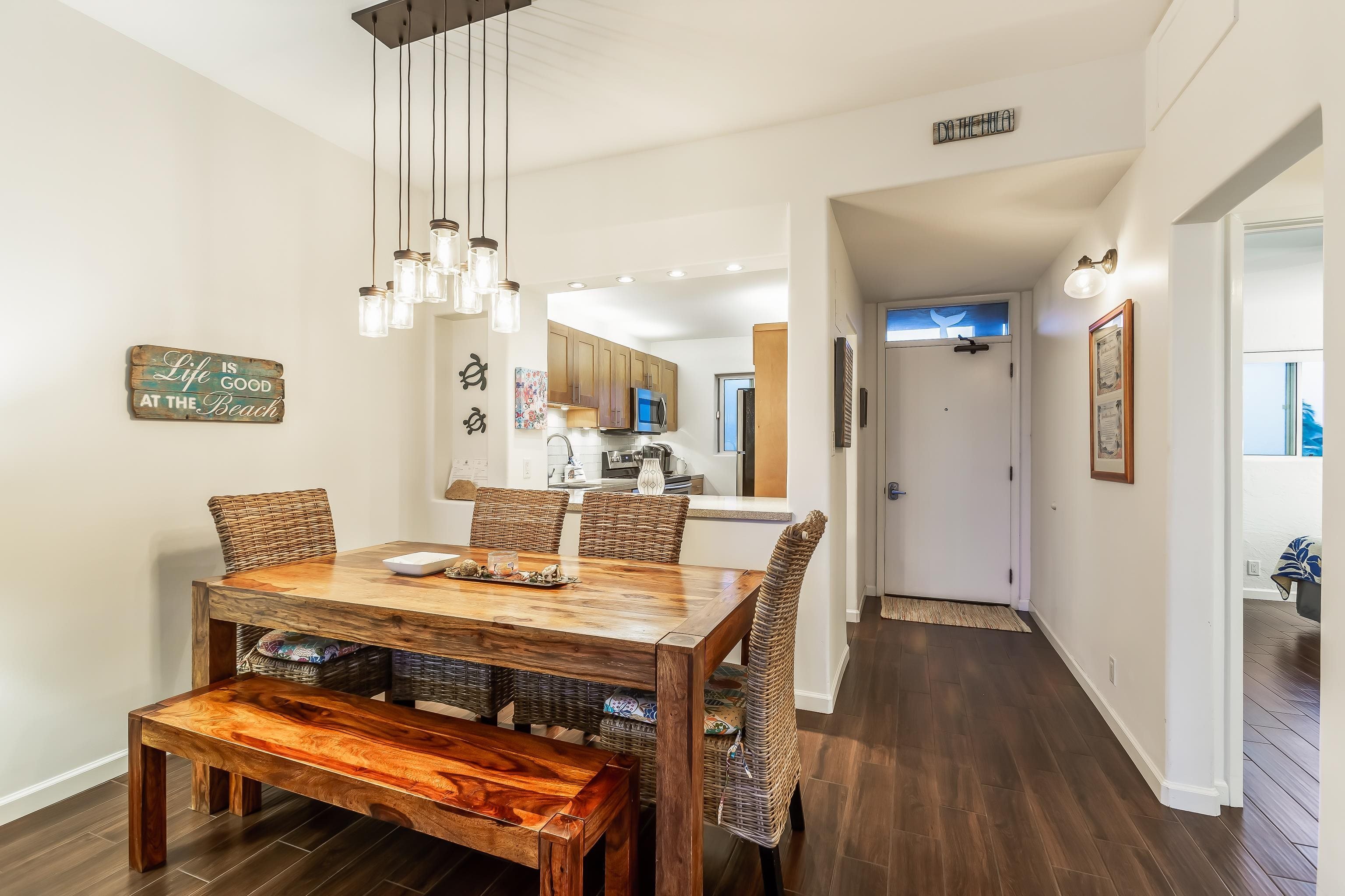 Have you been looking for a 2-bed, 2-bath, oceanfront unit in Kihei? Look no further! Menehune Shores is conveniently located in Central Kihei adjacent to Kalepolepo Fish Pond, also known as South Maui’s Baby Beach and home to many honu (Hawaiian Sea Turtles). Unit 625 is a beautifully remodeled, top floor, turn-key vacation rental with stunning ocean views and outer island views of Kaho’olawe from the living room, primary suite, and covered lanai. For a 360 degree view of Maui, head one floor up to the rooftop lounge where you’ll find plenty of tables, seating, and grills to BBQ up your favorite cuisines with one of the best dining views in South Maui. High atop the trees, this unit gets a nice island breeze when the trade winds are blowing. And when they’re not, enjoy the comfort of a 3-unit split AC system to keep you and your guests cool.
