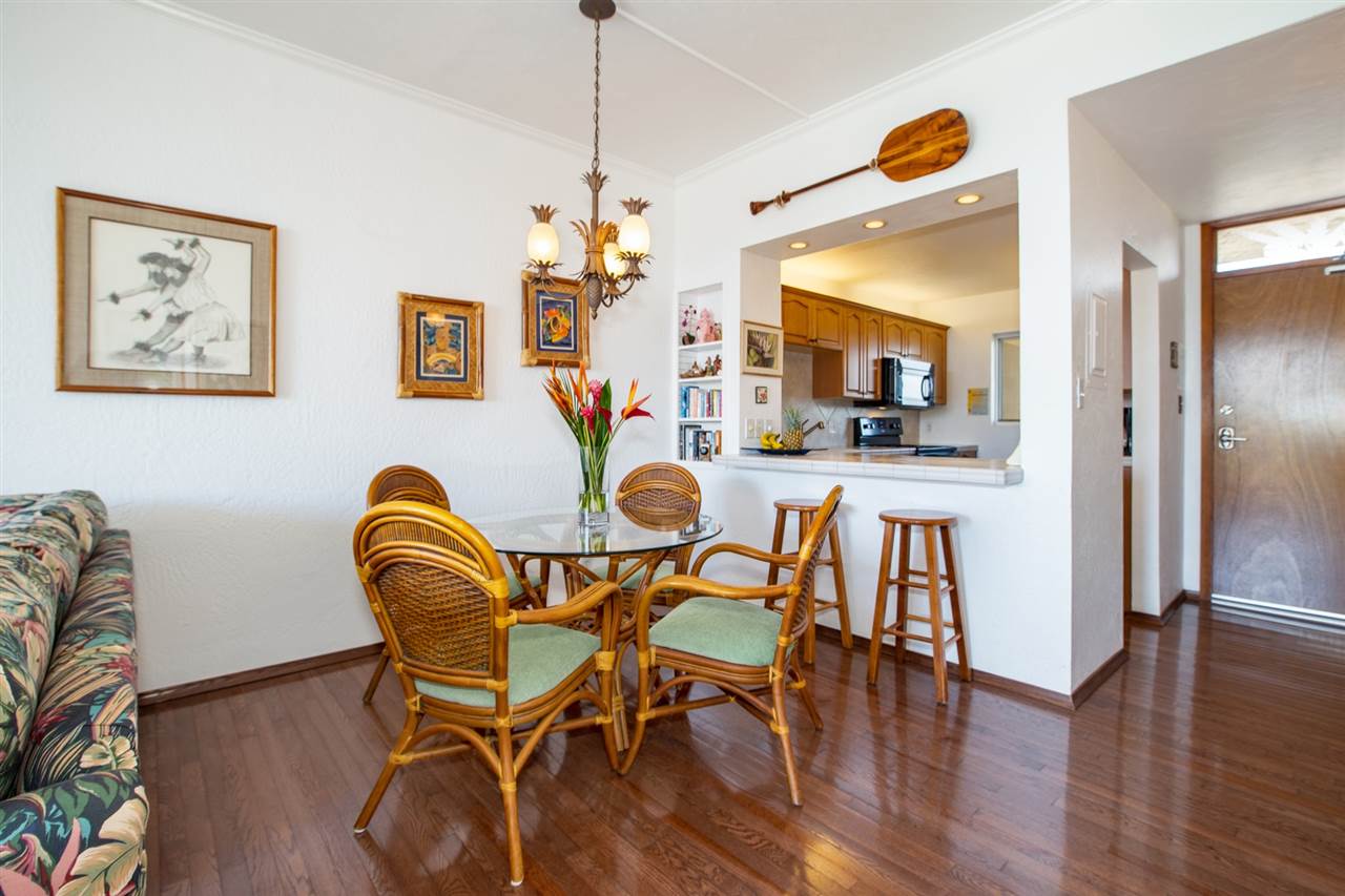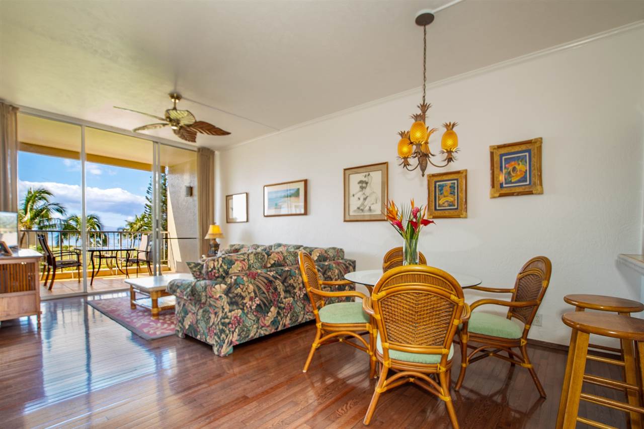 Unique opportunity to own a top floor, fully furnished end unit at Menehune Shores. Buyers have found Menehune Shores to be one of the most desirable vacation rental complexes in North Kihei, particularly with only a handful of units coming on the market within the past few years. With unit 627 being a top floor end unit, the extra two-foot higher ceilings provide a feeling of a larger space while the additional 4 windows result in more natural light and views of Haleakala from both bedrooms and bathrooms. The freshly painted interior has been tastefully decorated to provide you and your guests with a true Hawaiiana feel. High-end finishes include hardwood floors, custom window coverings in the living room and master bedroom, and unique lighting fixtures that highlight the Hawaiian theme. Menehune Shores is known for spectacular direct ocean front views from its rooftop deck, and impeccably maintained grounds. The building includes BBQ areas, shuffleboard courts, ocean front pool, and a restaurant on the premises. And most importantly… and just steps to the beach!