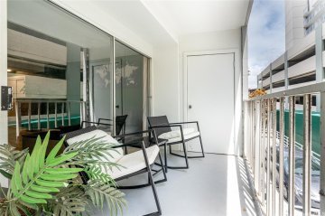 Monte Vista, fronting the Ala Wai Canal in central Waikiki with washer/dryer in each unit, one parking stall per unit in a secure garage, mostly fee simple with a few leasehold units (expire 2042), and just 3 blocks from Kuhio Beach.