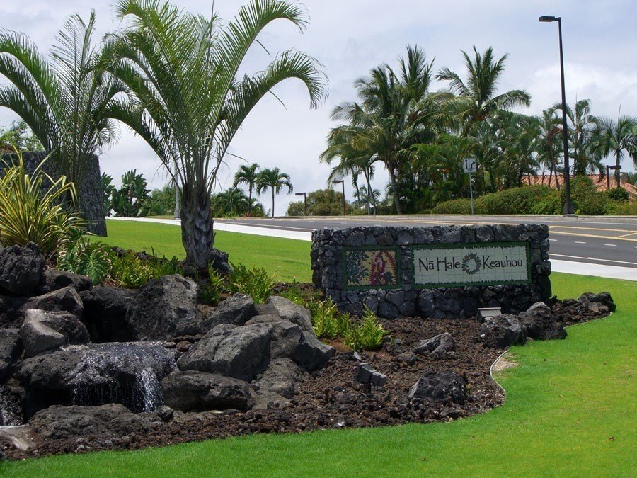 Na Hale O Keauhou is a gated community on the north end of Keauhou Resort, sitting against an open and undeveloped green hillside in that direction as well as a good portion of its eastern side.