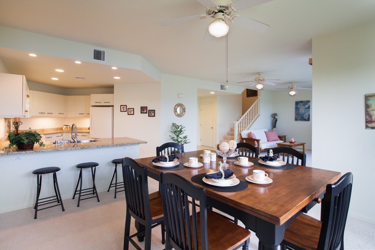 Na Hale O Keauhou is a beautiful gated condominum complex surrounded by tropical Hawaiian landscape in the heart of Keauhou Resort and conveniently located below the Keauhou Shopping Center. This well designed complex offers resort style living at its best. The pavilion by the pool is great for entertaining, social gatherings, a cool dip in the pool, or relaxing in the whirlpool spa, or you can work out in the fitness facility.