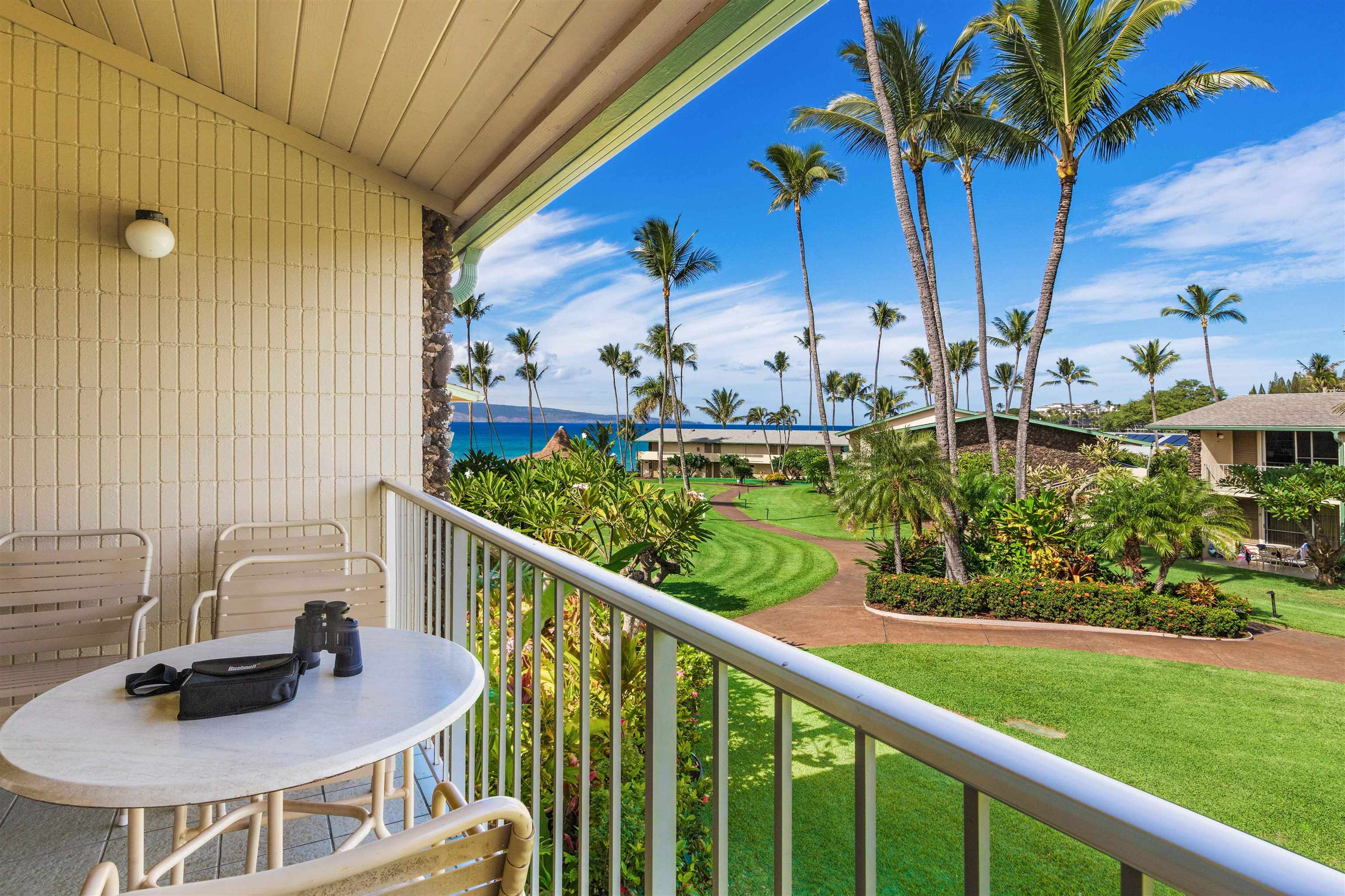 Turn your compass to Napili Shores F-252 where you will find, beautifully kept Hotel Zoned one-bedroom ocean view condo that is 100 yards to Napili Bay. This vacation rental residence features ocean, Molokai island, Gazebo restaurant, and verdant Mauna Kahalawai views from the covered lanai and living area. Rainbow colored ti-leaves and vibrant sweet smelling plumeria trees invigorate all senses and make a beautiful transition with lots of natural light and fresh air to the open-concept living area and its vaulted ceilings. Recently remodeled in 2021, this condo has contemporary upgrades throughout, including modern tile plank grain flooring, split air conditioning, and elegant contemporary furniture. The bathroom showcases handsome tile work, while the kitchen is equipped with stainless steel appliances, a perfect home away from home. Spanning over 600 sq. ft., this spacious one-bedroom lives in an immaculately landscaped tropical paradise with two pools, the famed Gazebo restaurant, and steps away from the golden sand shores and calm water of Napili Bay. With a past and current record of strong rental income, Napili Shores F-252 is not only a fantastic opportunity but also an invitation to immerse yourself in the vibrant West Maui life. Don’t miss the chance to own this exceptional property, where every detail has been meticulously crafted for your comfort and enjoyment. Come live and love your Maui life today at Napili Shores F-252.