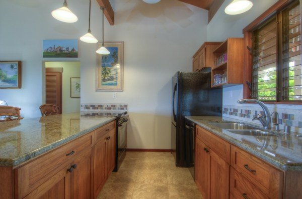 Enjoy cool trade winds, spectacular sunsets and winter whale watching from this preferred single-level two-bedroom two-bath condominium. This 1,279 square foot residence is located on the top floor of the three-story Building Five, has been tastefully renovated, and features a spacious living, dining and kitchen area with views of the Pacific Ocean and Poipu Beach palm trees, vaulted ceilings and an ocean view lanai (deck) suitable for outdoor dining. This property is currently a popular vacation rental because of its close proximity to South Kauai's beaches and is being offered fully furnished. Its master bedroom suite features a king-size bed, a handsome custom shower and direct access to the ocean view lanai. Its spacious second bedroom suite features two full-size beds, a tub/shower combo and a garden view lanai. You will appreciate the short 300-yard walkway through the lovely tropical garden, past its ocean view swimming pool, to world renowned Brennekes Beach and Poipu Beach, known for its consistently clean water, and safe swimming and snorkeling year round.