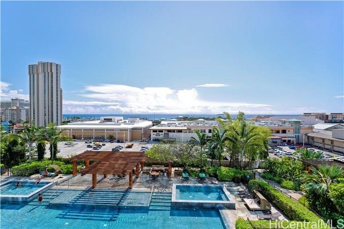 This spacious and desirable 2 bedroom + Den, 2.5 bathroom, 1,464sf residence features an open floor plan with luxurious finishes and uncompromised luxury. Sub Zero, Miele and Wolf Appliances in the kitchen, and deep-smoked Walnut wide plank engineered flooring through the entry foyer, kitchen and living areas. High-volume ceilings in living areas and bedrooms accompanied with floor to ceiling, double-paned windows with motorized shades, frame panoramic Ocean and City views. ONE Ala Moana is at the center of convenience just steps away from the largest open air shopping mall, accompanied with the privacy and amenities of a lush resort.