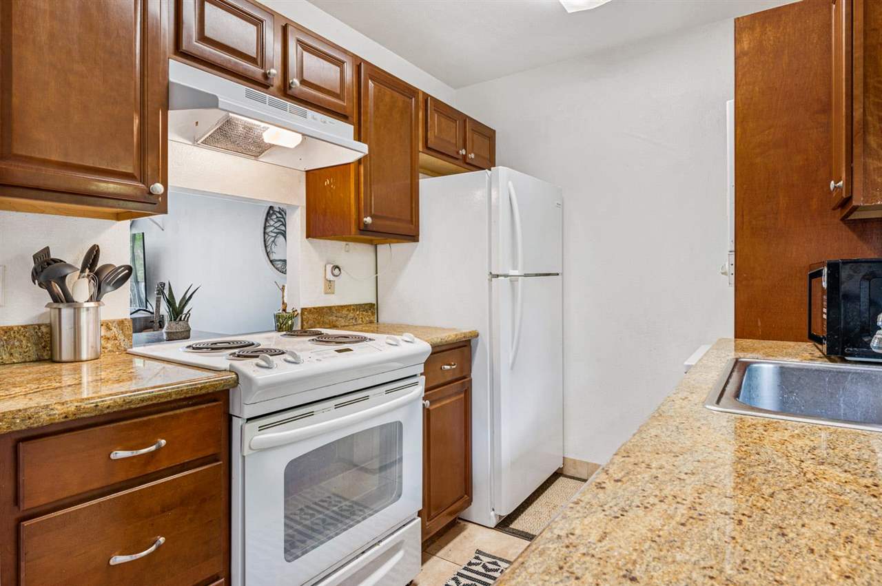 Beautiful vacation rentable, ocean and mountain views from this delightfully remodeled unit with newer warrantied appliances and granite counter tops. Popular, pet-friendly (25lbs max) complex is just steps across the street from fabulous Kamaole Beach One and Charlie Young's white sandy beaches. A short walk to great restaurants, world-class beaches and terrific, resort-style activities.The complex amenities include a pool with whirlpool hot tub, BBQ grills and picnic tables. TWO PARKING STALLS (#6 and #14) included! Currently vacant without furniture. Photos taken at time property was occupied. Easy to show