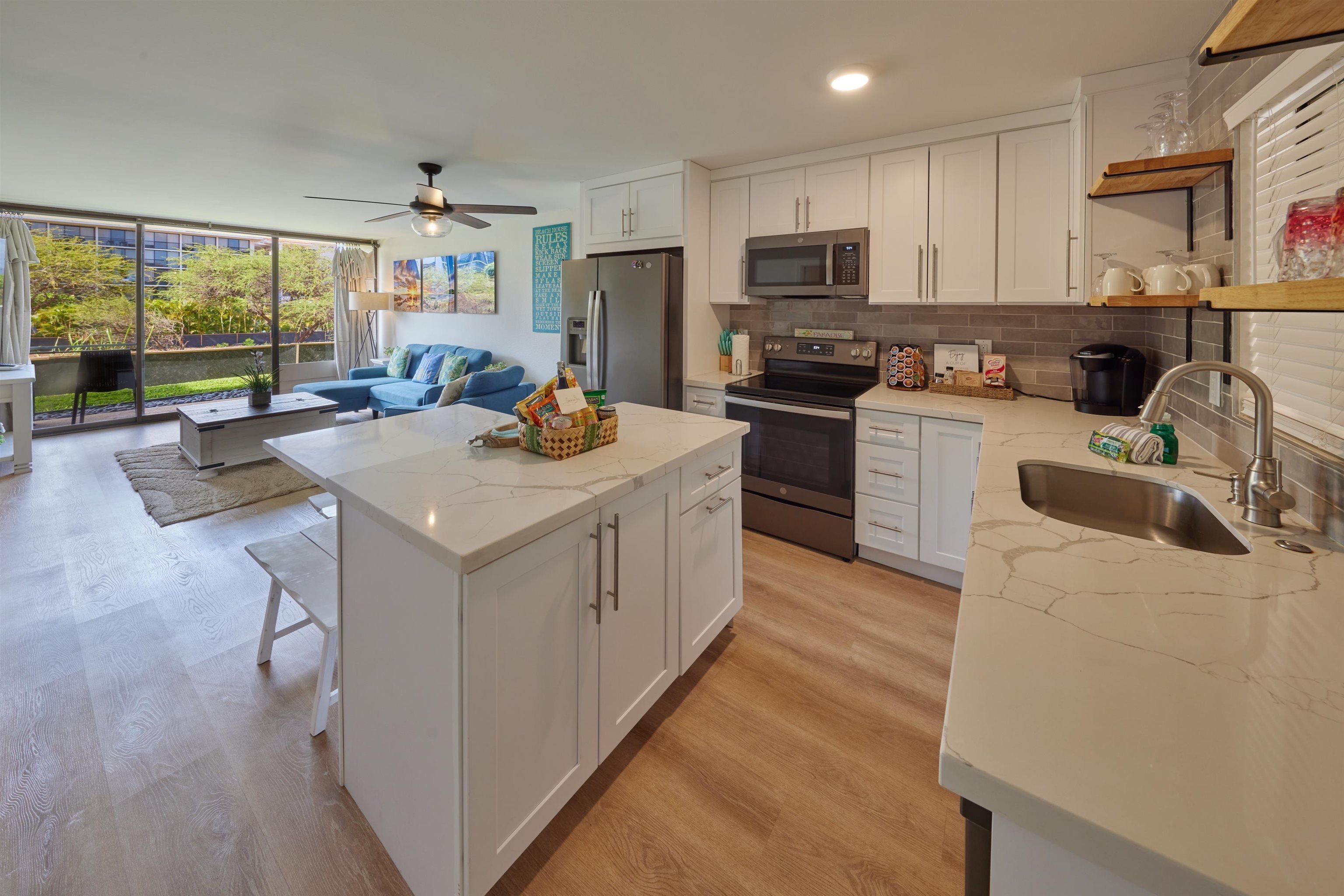 Here is your opportunity to purchase the only unit currently offered for sale! Completely remodeled ground floor vacation rental with a gorgeous brand new kitchen, all new flooring, new appliances and new split air conditioning in each room. Offered fully furnished and heavily booked! I will do my best to get you in for a viewing. Located in the heart of South Kihei, the Pacific Shores complex is pet friendly and allows short term rentals with low maintenance fees. Central to the best activities and premier golf courses that South Maui has to offer. Just a quick stroll in any direction will take you to nearby shopping, popular restaurants, and beaches, Kamaole I, Charley Young Beach and Cove Beach. Take advantage of the world class snorkeling, learn to surf and SUP across the street! Or just relax on property in the large heated pool and spa with pavilion and gas grills to enjoy a great bbq. Includes two assigned parking stalls: 211 & 184.