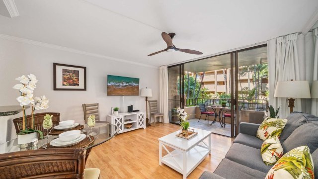 New Terms available! Seller financing, 15% down, 3 year term, interest rate 3.75% interest only 1st year, 2nd year 4.75% interest only 3rd year 5,5% No PP. Upgraded with easy access. No elevators, just walk right into this garden view unit and relax to the sound and view of the waterfall. Paradise feels like you've made your way to Hana without the drive. Turnkey and ready for occupancy.