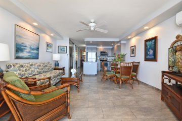 Papakea K301 is one of the best locations at Papakea. This prime corner suite has a new modern kitchen with stainless appliances, all new high-end furniture and tasteful decor. Papakea K301 has stunning views from this spacious, open corner end unit closet to the ocean. Located less than 50 yards from the ocean, makes this beautifully decorated and remodeled unit almost oceanfront. As one of the closer units to the ocean, you can hear the waves crashing, and enjoy the endless view. The location has wonderful cross breezes and tons of light as it is a corner suite with the extra window. The kitchen, living room, and lanai all have beautiful views of the resort and ocean. The K building is very desirable because it shelters the lanai and living room from the afternoon sun. The kitchen has stainless steel appliances, up-graded cabinets and the condo has tile through-out. The bathroom has a walk-in shower. Situated on 13 tropical acres the amenities include 2 ocean-side swimming pools, 2 whirlpool spas, 2 tennis courts, 2 oceanside cabanas, 2 pickleball courts, 2 twelve-hole putting greens, 24-hour front desk service, and ample parking. Within minutes to Duke's restaurants, shopping center, Farmers Market, coffee shops, sandy beaches, snorkeling and surf. Papakea is conveniently located between the Kaanapali and Kapalua world-class golf resorts, just minutes away from shops, restaurants galleries in nearby Lahaina and Whaler's Village. This condo comes fully furnished, turnkey with strong rental income that can transfer to the new owner.