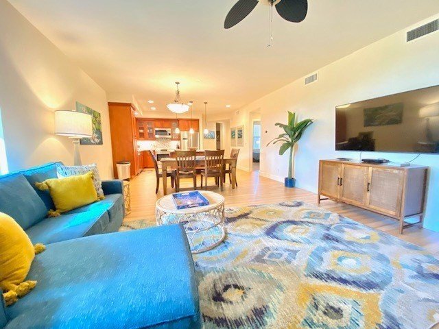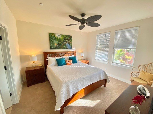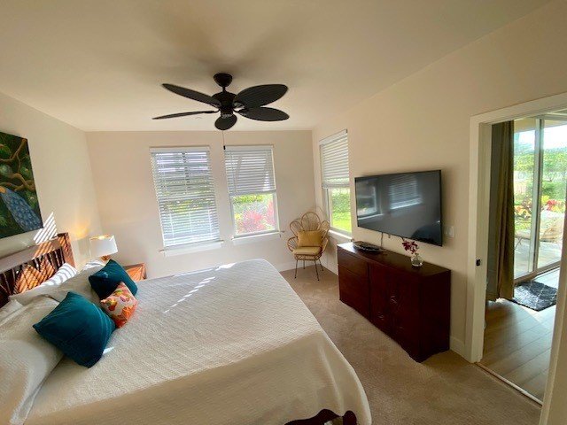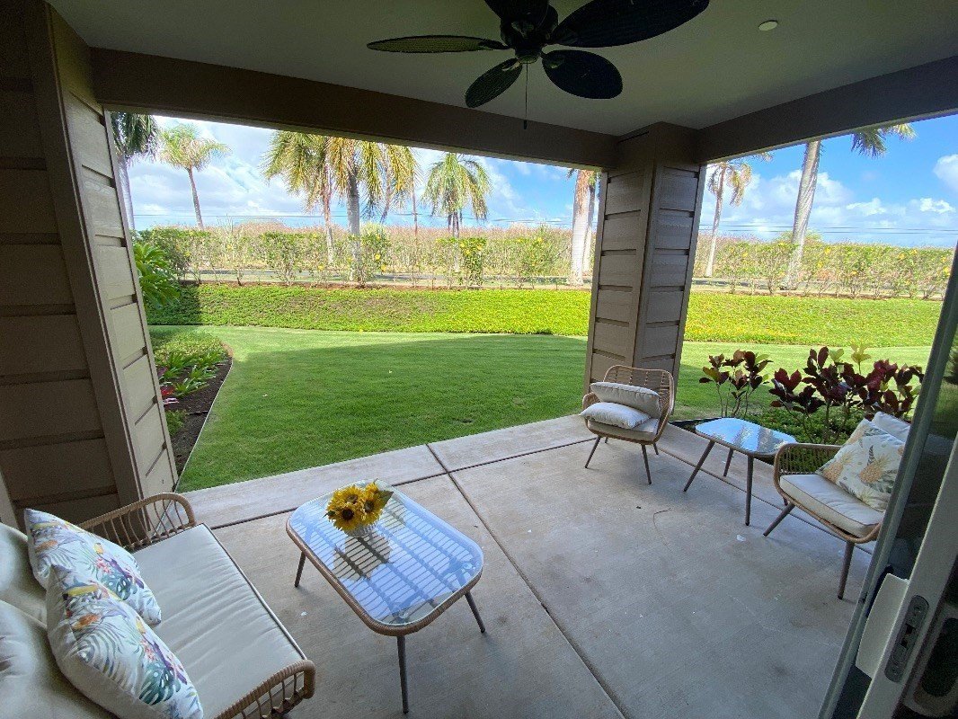 Only ground floor 3 bedroom 3 bath Villa in Pili Mai currently for sale. Pili Mai is set in an ideal location on the ninth fairway of the renowned Kiahuna Golf Course.This Moana floor plan is a ground floor, single level, 3 bedroom, 3 bathroom villa. Beautifully decorated and with mountain views. The beauty about owning on the ground floor is that it increases your living area. No steps, and your lanai opens out onto a beautiful grass area with flowers. It also has the largest garage.Designer art and furniture through out. Many extra upgrades along with custom Acacia wood cabinets, stainless steel Bosch appliances and granite countertops through out. Wood floors and Travertine in living rooms and baths. This villa looks and feels brand new.The community recreation center features a large swimming pool, a children's pool, a spa, and an air conditioned fitness room. A grilling area with gas grills is conveniently located just in front of the building.Golfers will enjoy being able to walk to their rounds at Kiahuna Golf Course, and from this ideal location you will enjoy easy access to some of Hawaii's most popular beaches as well as many fine dining and shopping opportunities. In addition, the Poipu area offers hiking on the Mahaulepu Heritage Trail, tours of the National Tropical Botanical Gardens, two fine golf courses, and many other activities. The south shore provides a convenient jumping off point for any direction you wish to go as you explore this magnificent island.-9 foot tall ceilings through out villa. -Central air -Nearby walking and biking paths -Close to world famous Poipu Beaches -Hawaiian cultural landmarks -Farm-to-table cuisine at nearby markets -Fresh local food markets -Tennis, golf, swimming and ocean activities -Sporting and community events year round -Deeded garage.