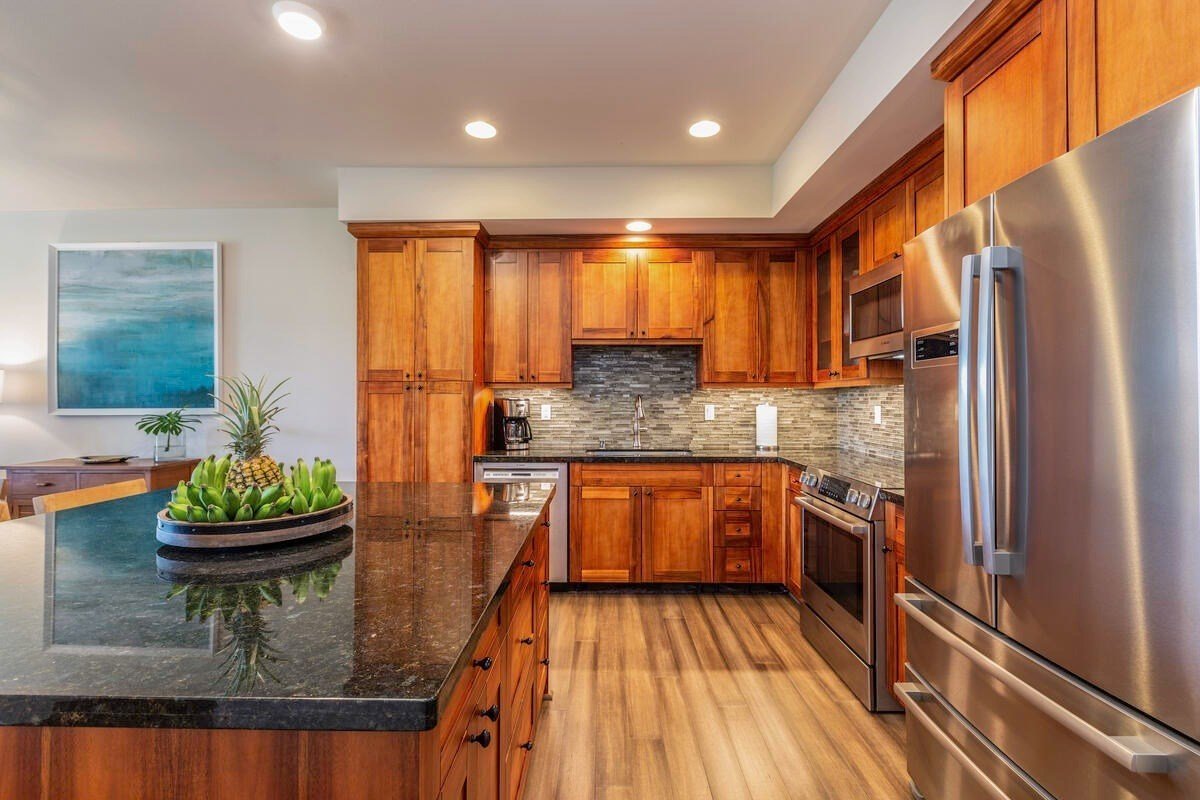 This elegant fully-furnished Villa 4-I in Poipu's newest condo development Pili Mai, is situated in an ideal location within walking distance to shops, restaurants, beaches, and Kiahuna Golf Course.This villa is located on the 2nd level with 9' ceilings and lots of natural light. Complete with 3 bedrooms, 3 full bathrooms, and a private entry lanai. The unit also includes a separate 231 sq ft deeded garage and another assigned parking stall.Special features include: -High end full teak furniture pieces -Upgraded lighting above kitchen island and dining pendant -Upgraded ceiling fans in every room -Bali blackout cellular window shades in all rooms -Italian tiled back lanai -Central air conditioning -Custom Acacia wood cabinetry -Stainless Bosch appliances -Granite countertops -Engineered wood flooring and soft carpeting in bedrooms -Travertine bathroom flooring and showers -Private entry lanaiThe Pili Mai recreation area includes a large swimming pool, children's pool, spa and a central air conditioned fitness center. Outdoor BBQ grills and dining tables are also available around the property to enjoy. Within the Vacation Destination Area (VDA) for use as a short-term rental, long-term rental or primary residence.
