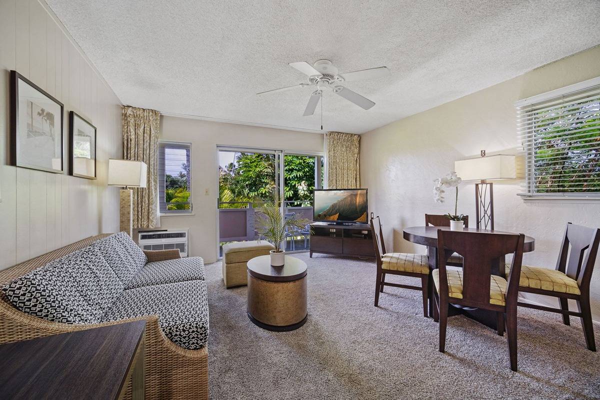 One of the least expensive one bedroom, one bathroom unit with a full kitchen on Kauai. E Komo Mai to paradise at Plantation Hale! Active vacation rental with full kitchen currently with the on-site rental program. This end unit with extra windows adds extra Hawaiian sunshine into your condo. Nestled in the renowned Coconut Coast area, this well-appointed unit boasts tropical garden and pool views and is just steps away from shopping, restaurants, and beach.The open layout of the living area is ideal for relaxing after a day of exploring the island. The kitchen is perfect for preparing delicious meals using fresh local ingredients. Stop by the farmers market next door every Tuesday and Thursday. The spacious bedroom provides a tranquil retreat, and the bathroom features a bathtub and shower combo.Plantation Hale offers fantastic amenities, including a sparkling swimming pools, hot tubs, barbecues shuffle board areas, and tropical landscaped grounds. With shopping, dining, and outdoor activities just moments away, this is the ultimate island getaway.Don't miss this opportunity to own a piece of paradise at Plantation Hale. Make your dream of island living a reality!