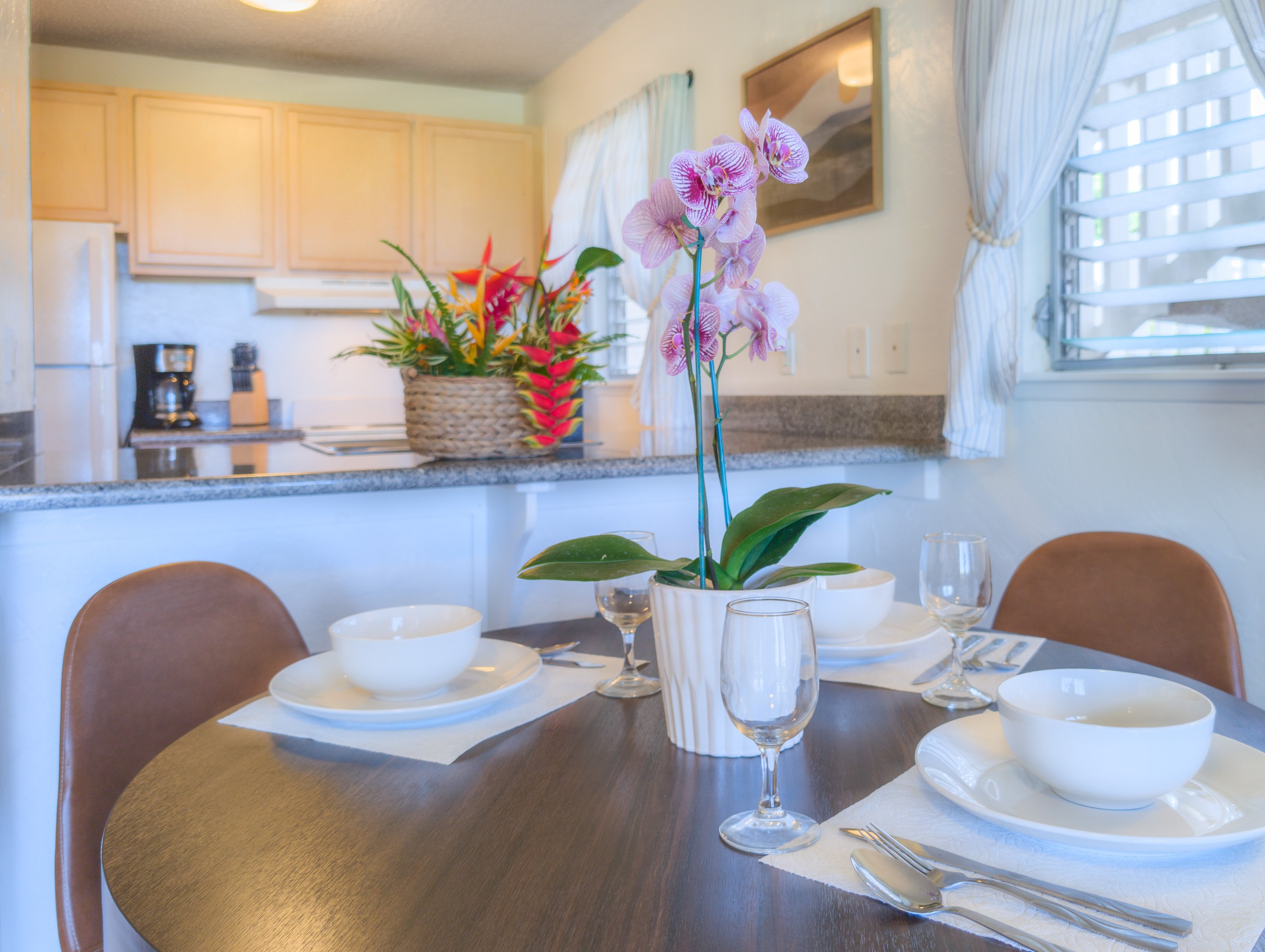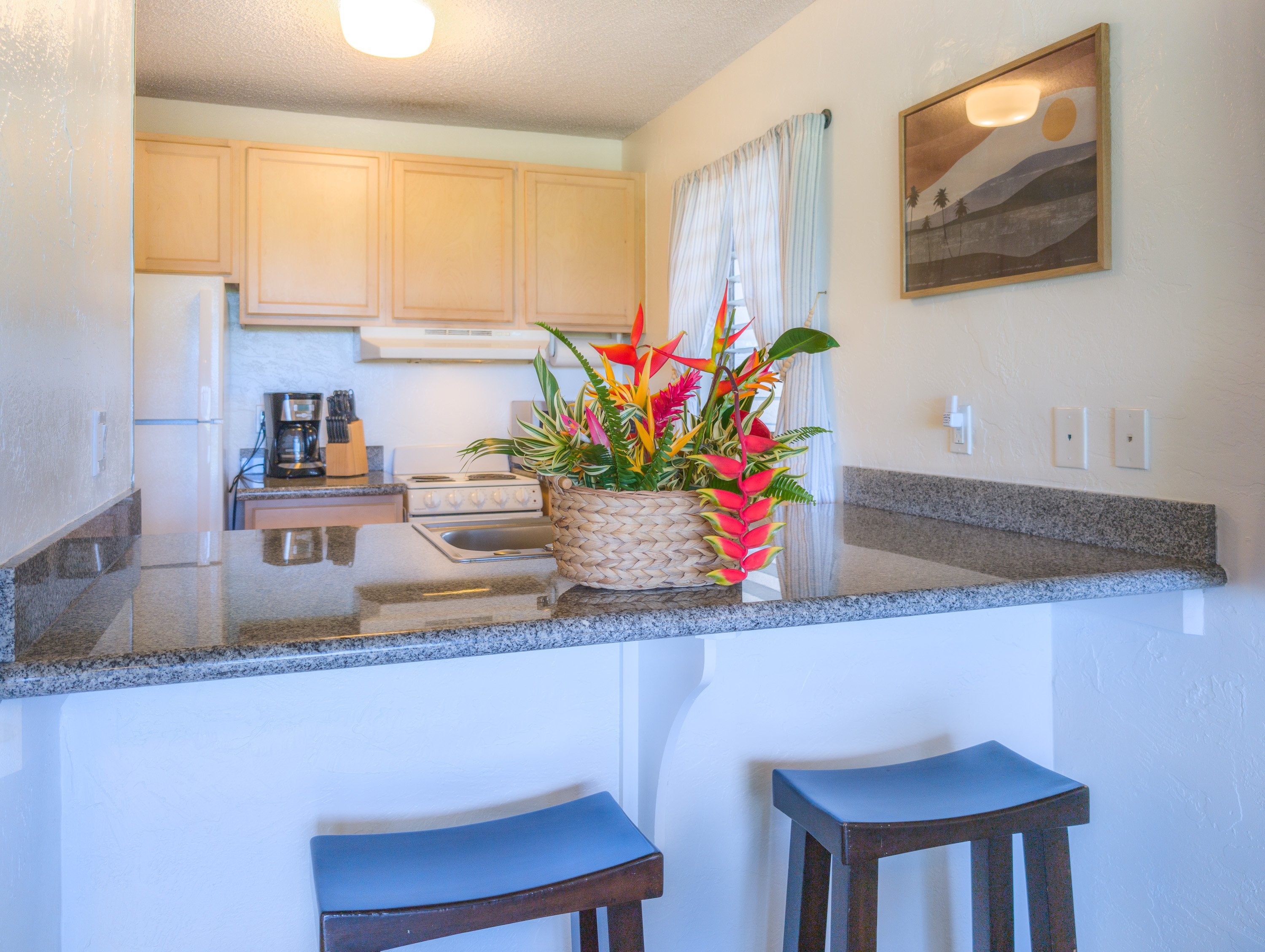 The unit comes fully furnished and equipped with everything you or your guests may need: fully stocked kitchen with all small appliances, extra bedding, extra towels, beach gear, vacuum, etc. Right next to the shopping and dining of Coconut Marketplace, the location is also convenient for linking up with the oceanfront Kauai Path for a stroll or bike ride. Currently, the unit is privately managed with a transferable calendar of bookings and high revenue potential. Options for on-site management are also available.