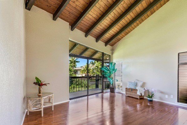 NEWLY refinished entry way and lanai. Vaulted ceilings and plenty of sunshine permeate this well maintained, privately located unit within the complex. Newly painted interior, new flooring PLUS upgraded kitchen and baths. This feels more like a home than a condo. This upstairs unit allows you the opportunity to enlarge living space 650 sqft for a total of over 2,000 sq ft of living!! This would make a great vacation rental or a comfortable second home.