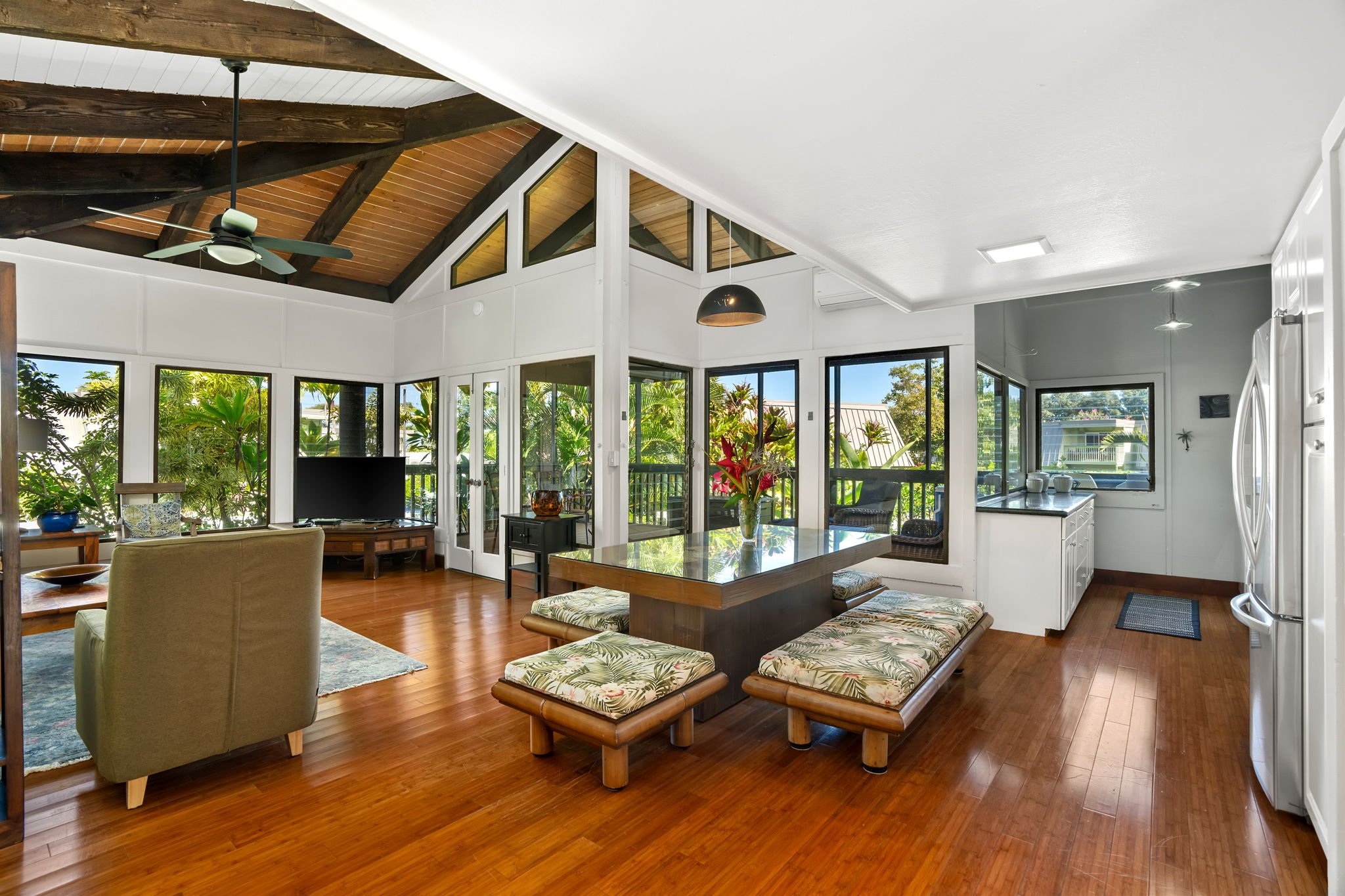 Into the main entrance you will find the beautifully appointed living area and kitchen with many upgrades: *AC in every room of the unit (including the lock out) *New built in closets and storage in every room. *Remodeled master bath *New furniture (comes fully furnished, some artwork will be excluded) *New flooring *Oversized screened in lanai perfectly oriented towards the Hawaiian trade winds *New Paint *New roof in 2020 *Peek-a-boo ocean views from the upstairs master bedroom
