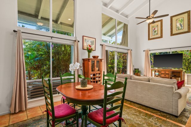 Owner-occupied for 26 years, this lovingly maintained and thoughtfully upgraded two-bedroom, two-bath end-unit condominium offers comfort, privacy, and convenience on Kauaʻi’s North Shore. The two-story layout provides excellent separation of space, enhanced by vaulted ceilings and abundant natural light throughout. Multiple lanais and expansive windows invite the island trade winds and encourage natural airflow.Upstairs, the primary suite enjoys a partial ocean view and a private lanai. The second bedroom also features its own lanai, while a third lanai extends from the living area, creating a seamless indoor–outdoor experience ideal for relaxed island living.The residence is offered fully furnished and is truly move-in ready. Assigned parking is conveniently located directly in front of the unit. As an end unit, it benefits from added privacy, landscaped surroundings, and a garden lanai that provides a peaceful outdoor retreat.Puamana is a well-managed community with recent HOA enhancements, including new roofs, fresh exterior paint, and refreshed walkways and driveways. Residents enjoy access to a community pool and shared green space. Nearby, The Westin Resort offers dining options, and pedestrian paths lead toward Wyllie’s Beach and Anini Beach. The Makai Golf Course is just minutes away.Situated within Kauaʻi’s Visitor Destination Area (VDA), this condominium may serve as a primary residence, second home, or short-term rental, offering flexibility for a variety of ownership goals.3D Walkthrough Tour: https://my.matterport.com/show/?m=CHN3bXYJFf5&brand=0&mls=1