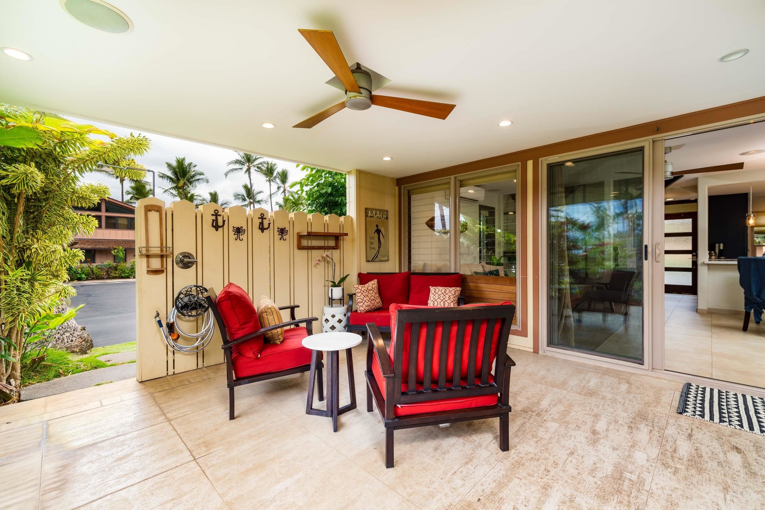 Puamana 167-4 is a beautiful 2-bedroom, 2.5 bath Island townhome with direct ocean access. Hawaiian living awaits you and your family in this elevated corner location that was completely remodeled in 2016. From the moment you walk through the front door you will appreciate the thoughtful design and tasteful finishes. The large open concept kitchen and living room flow out to an extra-large lanai which feels like an extension of the living and dining room. This floor plan truly captures the indoor-outdoor living style of the Hawaiian Islands. The lush landscaping makes it feel like you are in your own private tropical oasis and there is even a hot water outdoor shower to rinse off in after a long day at the beach. Both bedrooms are upstairs, just off the primary bedroom is an expansive private deck where you have a view of palm trees swaying in the breeze. Enjoy cocktails at sunset from the comfort of your outdoor sectional sofa or just lounge in the midday sun with your favorite book. Puamana is a gated 30-acre community of low-rise quality town homes nestled along the sunny south shore of Lahaina. Stroll the 30 acres of Puamana’s botanical wonders with hundreds of palm trees, soaring banyan trees, huge mango trees, and lush tropical landscaping filled with exotic flowers. Splash and surf in the waves along its 1/4-mile golden sand beach. Play tennis or refresh yourself in any of the three pools. The oceanfront pool is a one-of-a-kind deep-water pool that juts into the ocean, great for sunning or swimming laps while the Dolphin pool with playground gets all of the kid's attention. Neighboring Lahaina Town within walking distance beckons you to enjoy the bustling harbor activities and its treasure trove of shops, restaurants, and nightlife. Stake your claim, secure this home now, then kick-back and relax knowing you have made a great “quality of life” investment in 30 acres of the best oceanfront land on Maui. Puamana 167-4 is being sold turn-key and is currently rented as a vacation rental with advance reservations to be honored. Please call to schedule a showing.