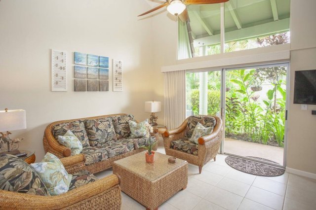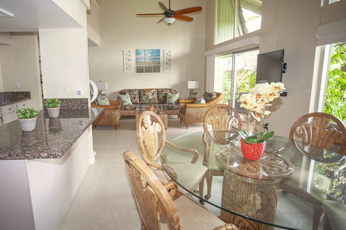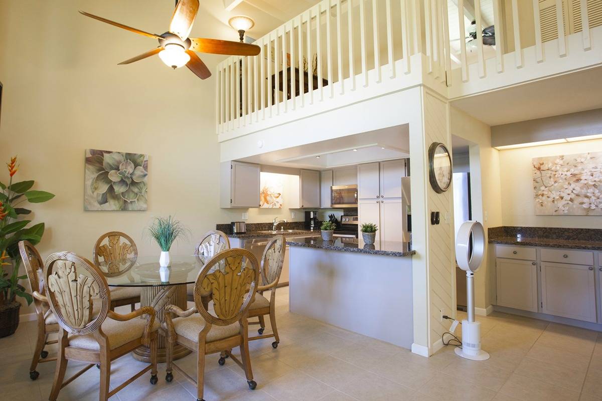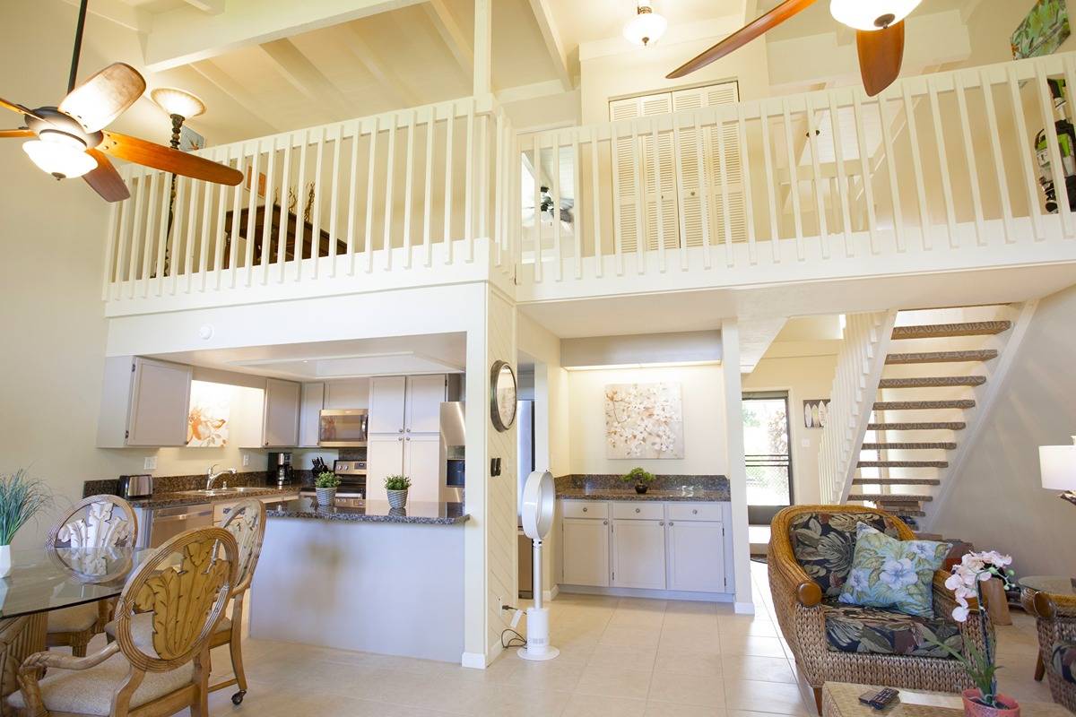Don't miss this amazing Princeville gem! Lovely Puamana townhome #6C offers many features in a private, garden-view setting. As an added bonus, there is no one above or below you!The open floor plan features custom tile flooring and an upgraded, fully equipped kitchen. Beautiful natural lighting, with high ceilings and ample windows. The comfortable living space opens to your own private lanai and enjoy Hawaii’s indoor-outdoor living!Upstairs the original loft-style primary bedroom has been fully enclosed for privacy and features a bonus office space! Second bedroom with its own private lanai, and full bath are located on the ground floor.This townhome is tastefully decorated, sold fully furnished and turnkey as a successful vacation rental, or enjoy use as a second home or primary residence. #6C is well positioned within the complex and surrounded by green space creating further privacy.Puamana is located in the heart of Princeville, adjacent to the Westin Resort and the trail to Anini Beach. The best north shore beaches, dining, shopping, and golf are all just minutes away!