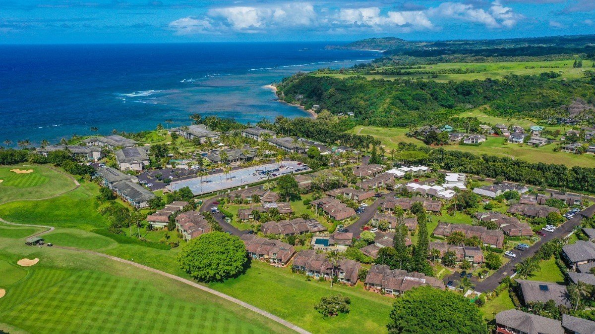 Puamana is located directly behind the Westin resort in Princeville, approx. 1/3 mile from the coastline. The Princeville Makai Golf Course’s 12th fairway lies next to it on the west, while just across Wylie Rd on the east side runs the 6th fairway of the Prince Golf Course.