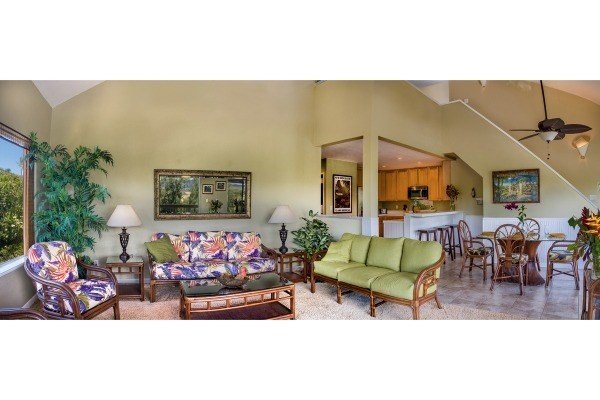 Need a lot more space in Paradise??? High vaulted ceilings, large windows, multiple Lanai's, fully furnished (including 55" Flat Screen TV with surround sound), 3 large bedrooms with 3 bathrooms, top floor corner facing North and East (directly into the Tradewinds) with views of open fields, Mt Haupu and an extinct volcanic crater. Meticulous Owners have elegantly upgraded this condo with NEW: cabinet fronts, tile floors, carpet, paint, appliances, ceiling fans and much more. Amenities include 3 Pools, 3 Jacuzzi's, Tennis Courts and extensive green belt walking trails link you to Shipwreck's Beach and Brennecke's Beach within a short stroll. Shopping and Fine Dining are just down the road. Currently used as a successful vacation rental but also perfect for residential use. Excellent storage areas inside and out. You really must see this one!!!