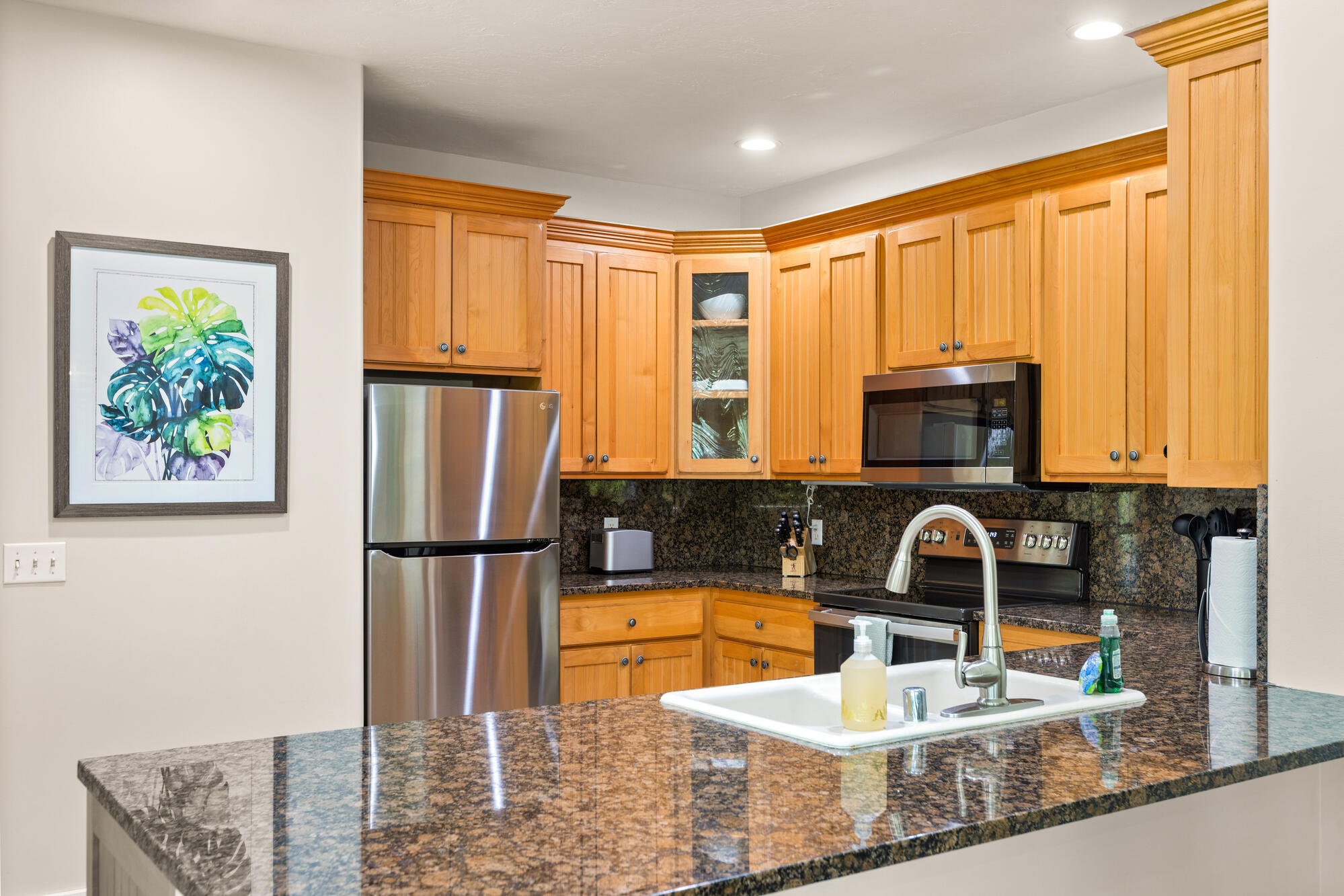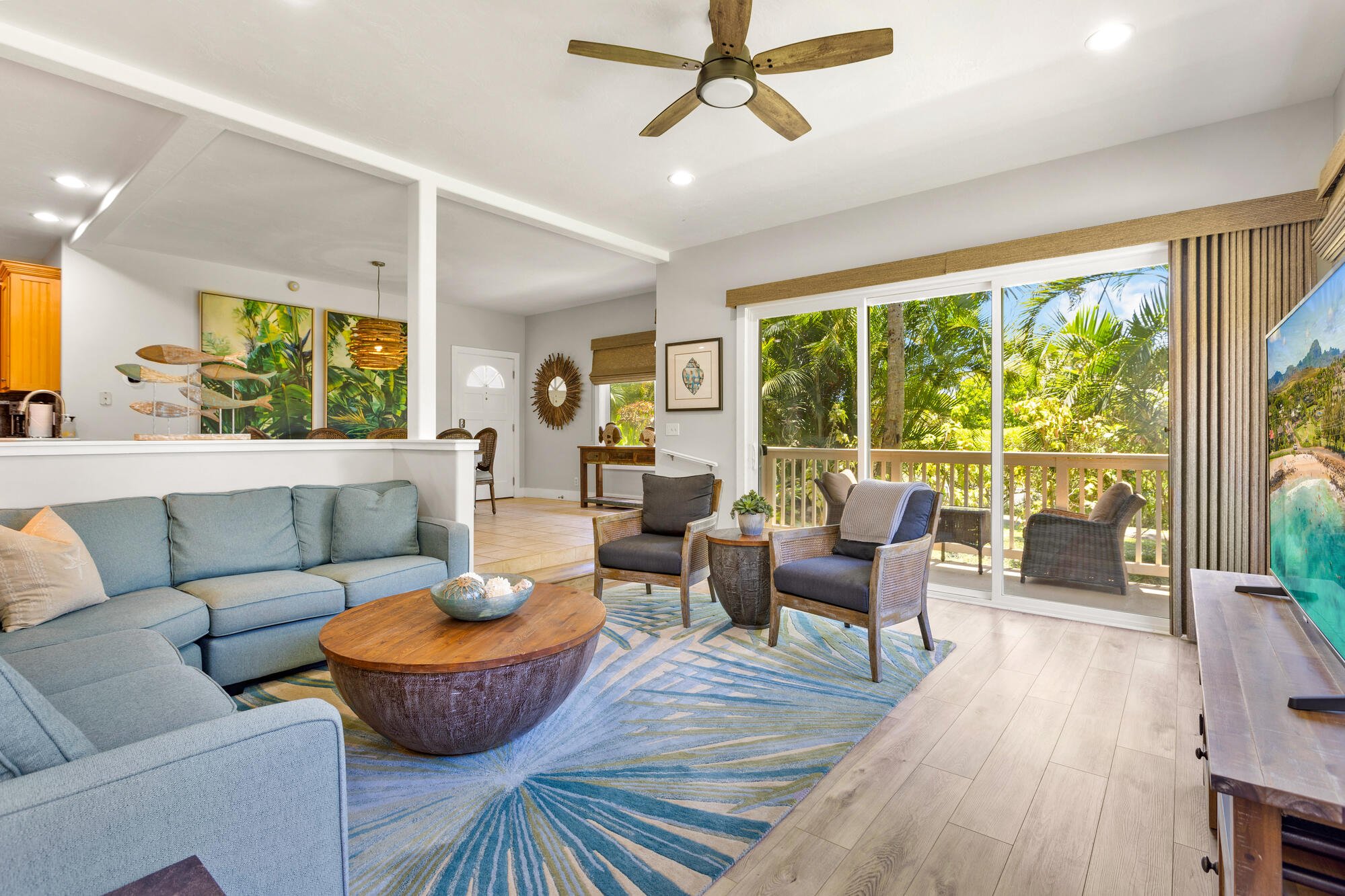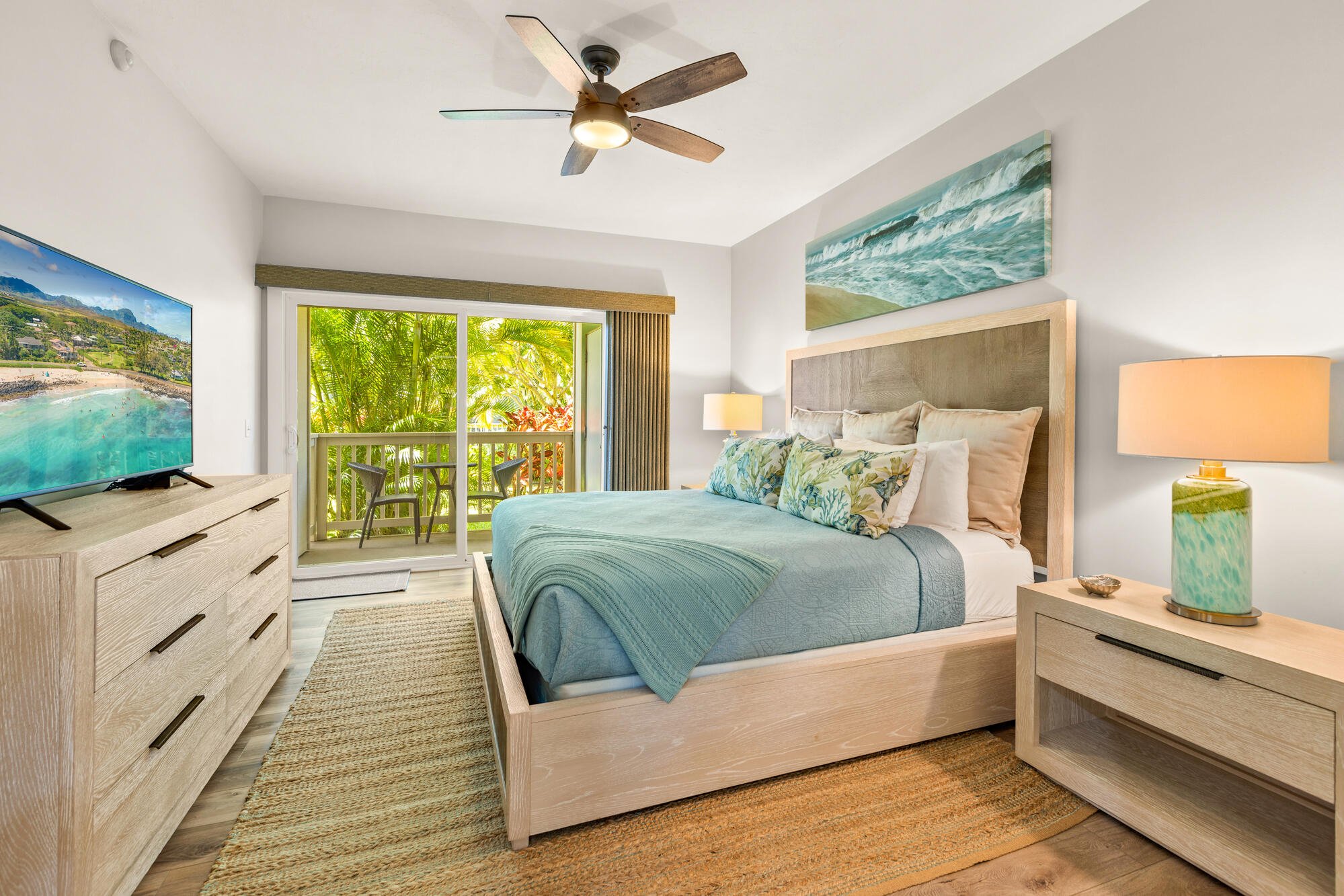 Walk to the beach from this beautiful 2 bedroom 2 bath fully furnished vacation rental condo with central air conditioning. Roomy primary bedroom with king size bed and luxurious on-suite bathroom with sunken jetted tub and shower. Spacious second bedroom also has a king bed and guest bath has tub/shower combo. Well established income producing property with an exceptional rating on and future bookings reserved through 2025. Enjoy the flexibility of part time island living or make it your full time personal residence. Ground floor unit provides easy access to a paved walking path to the many resort amenities including your choice of 3 different pool and jacuzzi areas, tennis and pickleball courts and beautiful nearby beaches. Take a stroll through the beautiful greenbelt to Brennecke’s Beach to watch the sea turtles or partake in some world-class boogie boarding and body surfing. Head the opposite direction for quick access to the Grand Hyatt Kauai Resort and Shipwrecks Beach. Sunny Poipu is a great home base for exploring the island of Kauai, from Waimea Canyon and Polihale on the West side of the island to Princeville and Hanalei to the North.