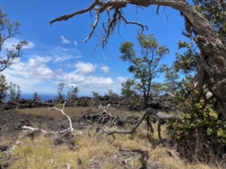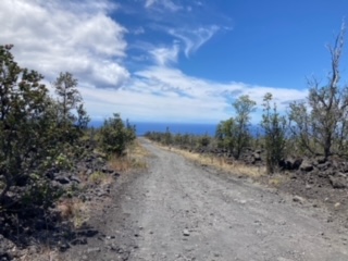 This amazing property is well worth the drive down the sometimes rough road, but please only drive down this far with either an AWD or a 4WD vehicle with high clearance. The land starts at about the 1.8 mile point and will be marked with a sign at the front entrance. No conventional power is available, but solar and/or wind power would work well here. Water is by catchment system or delivery. The zoning is A-3, so there may be a possibility of subdividing with county approval. Lava Zone 2, Flood Zone X.