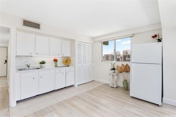 Beautiful one-bedroom condo in the heart of Waikiki. Watch the evening paddlers and enjoy stunning views from your 11th-floor lanai! Updated luxury vinyl flooring and fresh paint. This bright unit is move-in ready. Features include a built-in kitchen island with storage, split A/C, secured building, and UTILITIES COVERED in the maintenance fees (including cable, electric, water/sewer, and internet). The unit also comes with a dedicated parking stall and bonus storage. Book your private showing to see it today! Click the video link for tour.