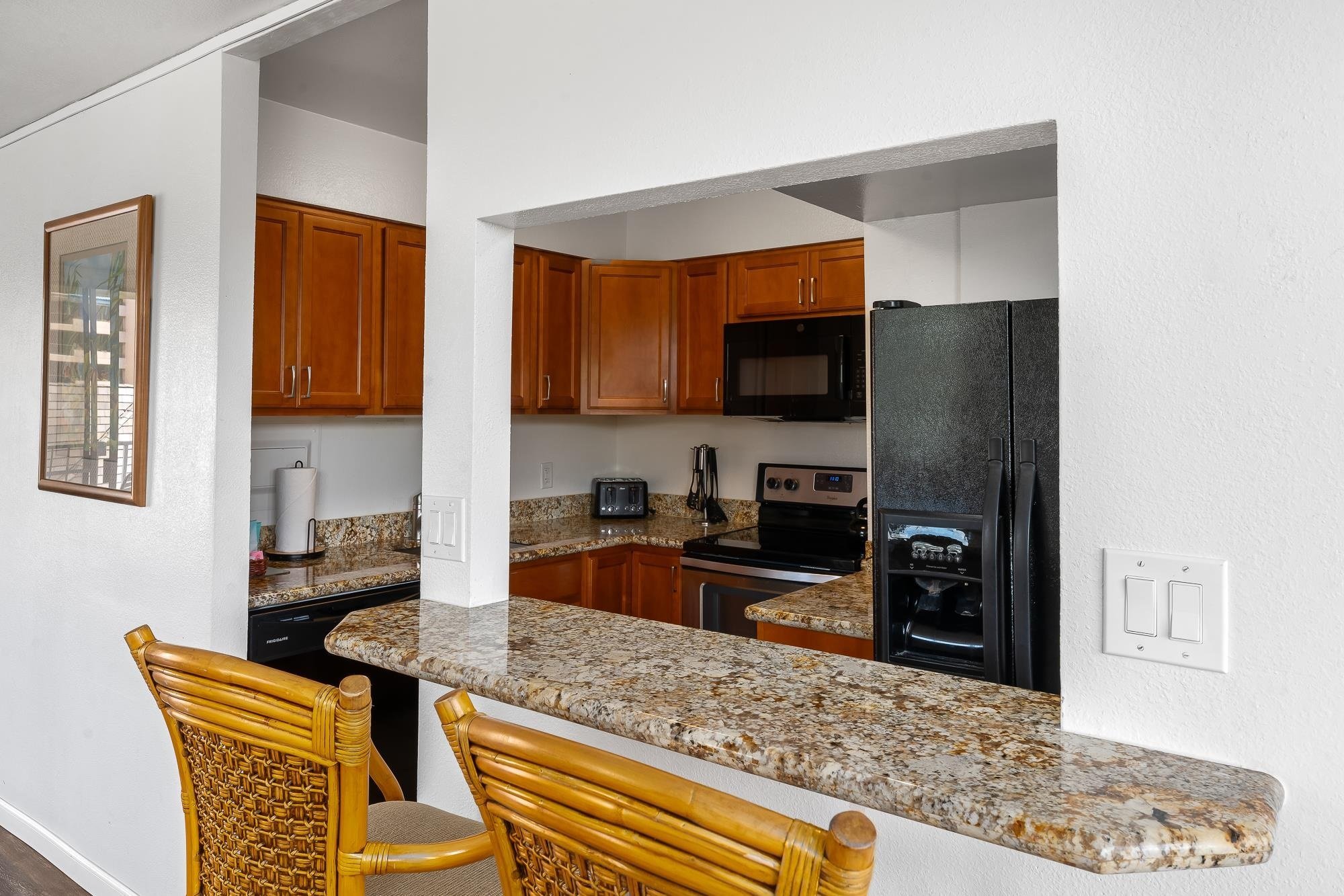 An in demand spacious 2 bed 2 bath unit at Royal Kahana. Enjoy ocean views, sunsets and West Maui Mountains from your lanai while sipping on your favorite beverage. Some upgrades include granite countertops in the kitchen and baths. The entryway, kitchen and bathrooms are tiled and the remainder of the flooring is durable simulated wood vinyl. This corner unit provides lots of light thru the many windows throughout. When you come in from the beach, enjoy some cool air with the recently upgraded central air conditioning system. A washer and dryer for convenience of having clean laundry without leaving the unit. An extra storage unit may be available via a waiting list. The Royal Kahana improvements over the last several years include a new pool deck with new BBQ’s, tropical covering for shade and many landscaping additions and there is an exercise room. Royal Kahana is one of the very few condominium properties with underground parking. Located near shopping and dining. To name a few, maintenance fees include electricity, water, trash, basic cable TV, internet, building, landscaping and master insurance policy.