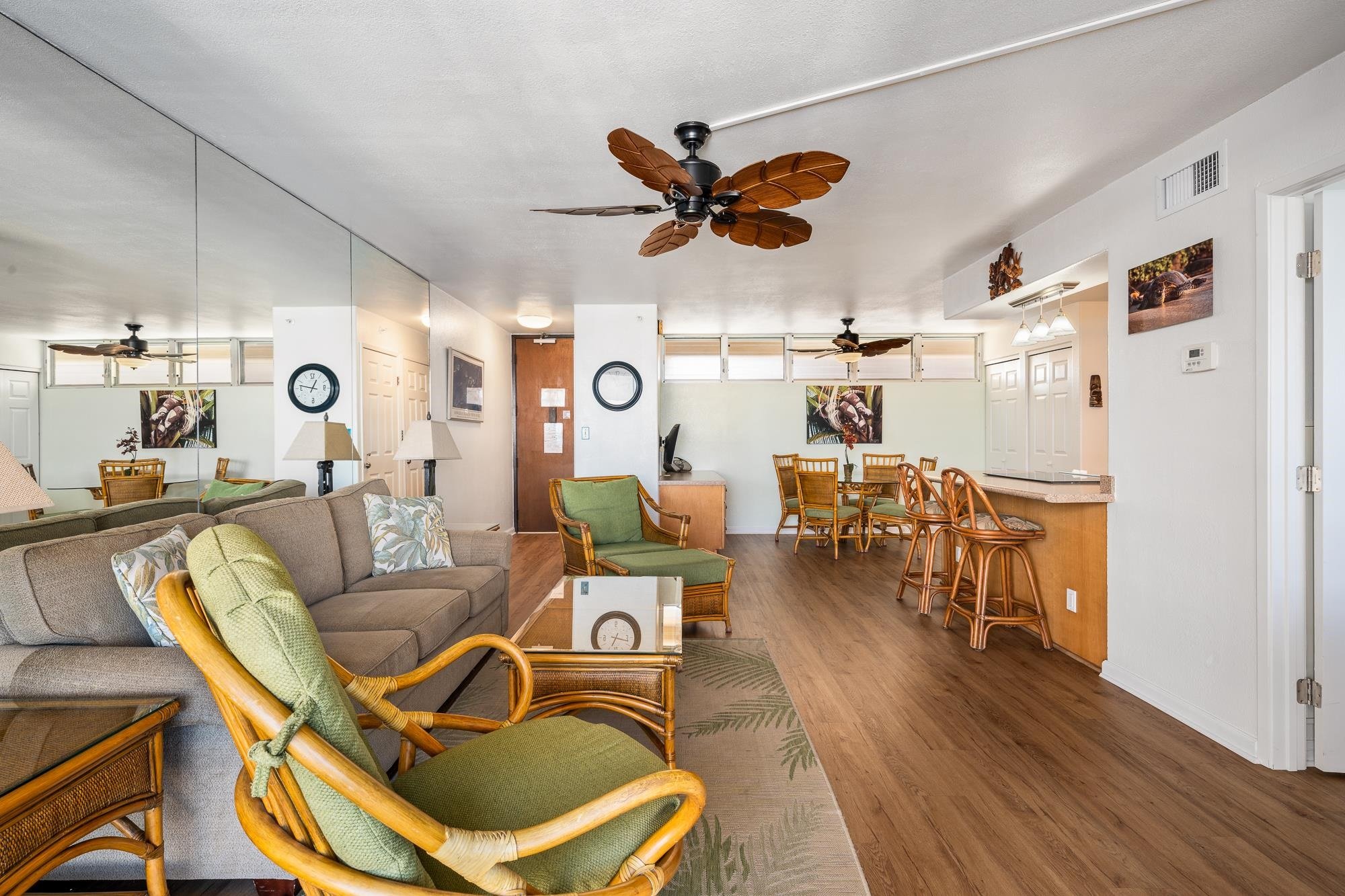 Enjoy ocean views and majestic Molokai from your lanai while sipping on your favorite beverage. Upgrades include durable simulated wood flooring throughout the unit, kitchen and bath cabinets, walk in tiled shower, textured ceilings, work desk and organizer closet system. When you come in from the sandy beach, enjoy some cool air with the recently upgraded central air conditioning system. A washer and dryer for convenience of having clean laundry without leaving the unit. An extra storage unit may be available via a waiting list. The Royal Kahana improvements over the last several years include a new pool deck with new BBQ’s, tropical covering for shade and many landscaping additions and there is an exercise room. Royal Kahana is one of the very few condominium properties with underground parking. Located near shopping and dining. To name a few, maintenance fees include electricity, water, trash, basic cable TV, internet, building, landscaping and master insurance policy.