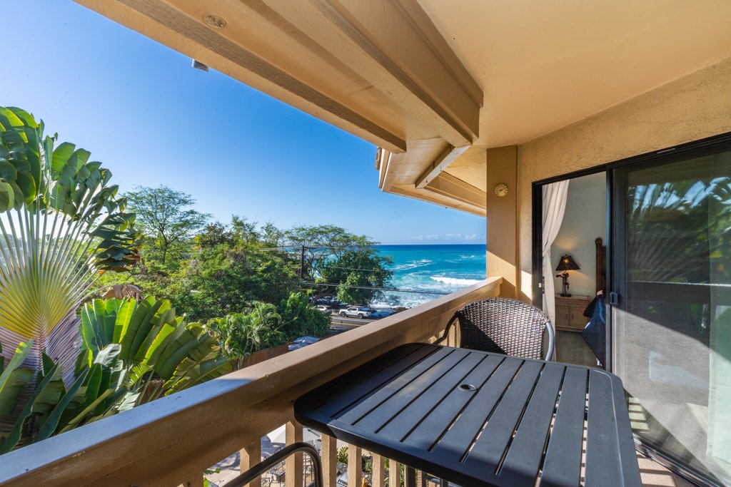 Enjoy ocean views from this updated 2-bedroom, 2-bath condo in Royal Kahili. This top-floor unit is sold furnished, turnkey, and is currently used as a busy short-term vacation rental. Ideal location on Alii Drive with unobstructed views from the lanai over Lyman's Bay, next to Banyan's Beach Park, a legendary surf spot. Tastefully decorated, this updated condo features new appliances, new windows and sliding glass door, smart central A/C that can be easily controlled by your phone, and new flooring. A heated saltwater pool overlooking the ocean, hot tub, and BBQ area are great for sunsets. The tropical landscaping and koi pond add to the relaxing feel of the complex. Reserved covered parking. Maintenance fees include water, sewer, trash, cable, wireless internet, and building insurance.