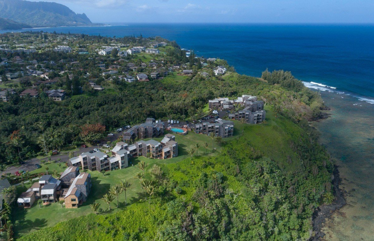 Princeville Sealodge is an oceanfront community, the condos as close as 80 yards from the Pacific, with a downslope covered with greenery being the only thing between them. This property is further cushioned on the back side by another large b... Read more