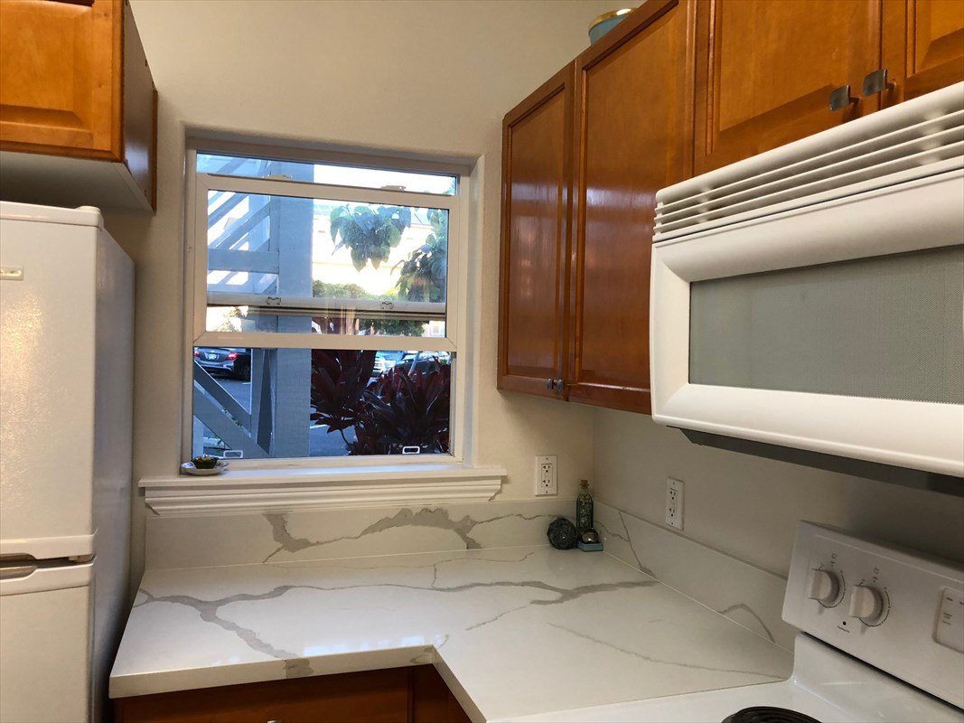 Spacious, clean, freshly painted, and a nice view of the coastline. Newly renovated kitchen with quartz countertops, stainless steel sink, flooring, and brand new range/oven. Some of the great features at Seascape are; one assigned parking stall, low maintenance fee, lots of guest parking, BBQ area with pavilion, and pets are allowed with approval. Seascape has an excellent location close to the airport, boat harbor, beaches, big box stores, restaurants, UH Palamanui Campus, and Kukio and Waikoloa are within a reasonable driving distance! Cool ocean and mountain breezes. No pool, but you are minutes away from some of the finest white sand beaches in Hawaii. Kekaha Kai Beach Park, Makalawena Beach, Manini'owali Beach, and Kukio are just 16 to 18 minutes away!