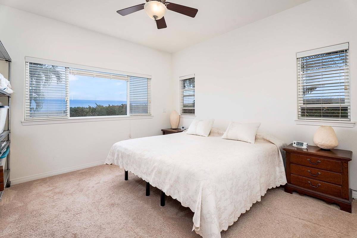 Welcome to Kona’s Seascape Condominium that was aptly named as you will enjoy beautiful year-round ocean views and sunsets. This delightful and well maintained 2 bedroom/2 bath 1010 sqft ground floor end unit is surrounded by lovely tropical landscapes that border large fields of state land for expansive views to the coast. Come inside to 9-foot ceilings and an open and airy design that flows nicely from the kitchen through the dining and living room out to the blue ocean views of the lanai. A well-appointed kitchen offers a modern 4 stool bar with countertops made of granite and the cabinets are fine wood cabinets. Transition to the bedroom and bath wing through 8-foot-high entrance. The primary bedroom boasts; large slider windows on the ocean view side of the room and dual windows on the bed sides for cool breezes; The primary ensuite bath and guest bath are both beautifully tiled with walk in shower, granite countertops and Toto washlet too!Additional Features: Granite Countertops in Kitchen & Baths High End Tile throughout the Unit Appliances are upgraded or lightly used. Full sized stacked washer/dryer Solar hot water to save electricity. 1 assigned parking space and guest parking Small pets allowed with HOA approval.Common Area includes beautifully cared for tropical landscaping and BBQ pavilion with picnic tables and more nice views! Seascape Condominium is conveniently located near Kona Airport, Honkahau small boat harbor and marina, Costco, beaches, and an easy commute to Kona Town or north to the Gold Coast Resorts.