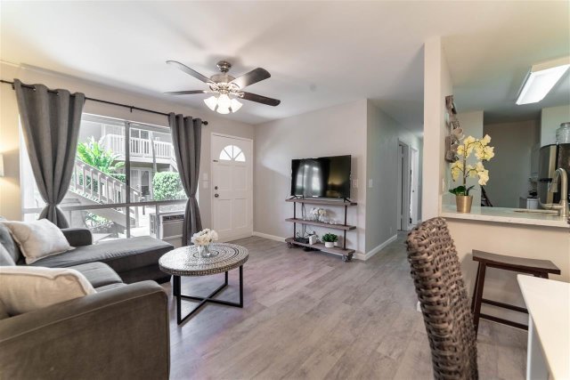 RARE MAIN FLOOR CORNER UNIT WITH A YARD! Desirable location in the far north corner of the complex, next to Southpointe houses. This unit also comes with 2 separate parking stalls #7 & #8 (not tandem). Endless list of upgrades includes new kitchen remodel with custom cabinets to the ceiling, stainless steel appliances including; induction oven, GE microwave range hood, refrigerator and dishwasher. New laminate flooring and paint throughout, new tile flooring and vanity in the restroom. 10 minute walk to the beach, playground on site, quiet neighborhood complex. 2 pets allowed per unit. HOA includes: water, trash, basic cable, maintenance of common areas and 24 hour security Indoor and outdoor furniture negotiable. Unit is clean, Owner occupied and move in ready!