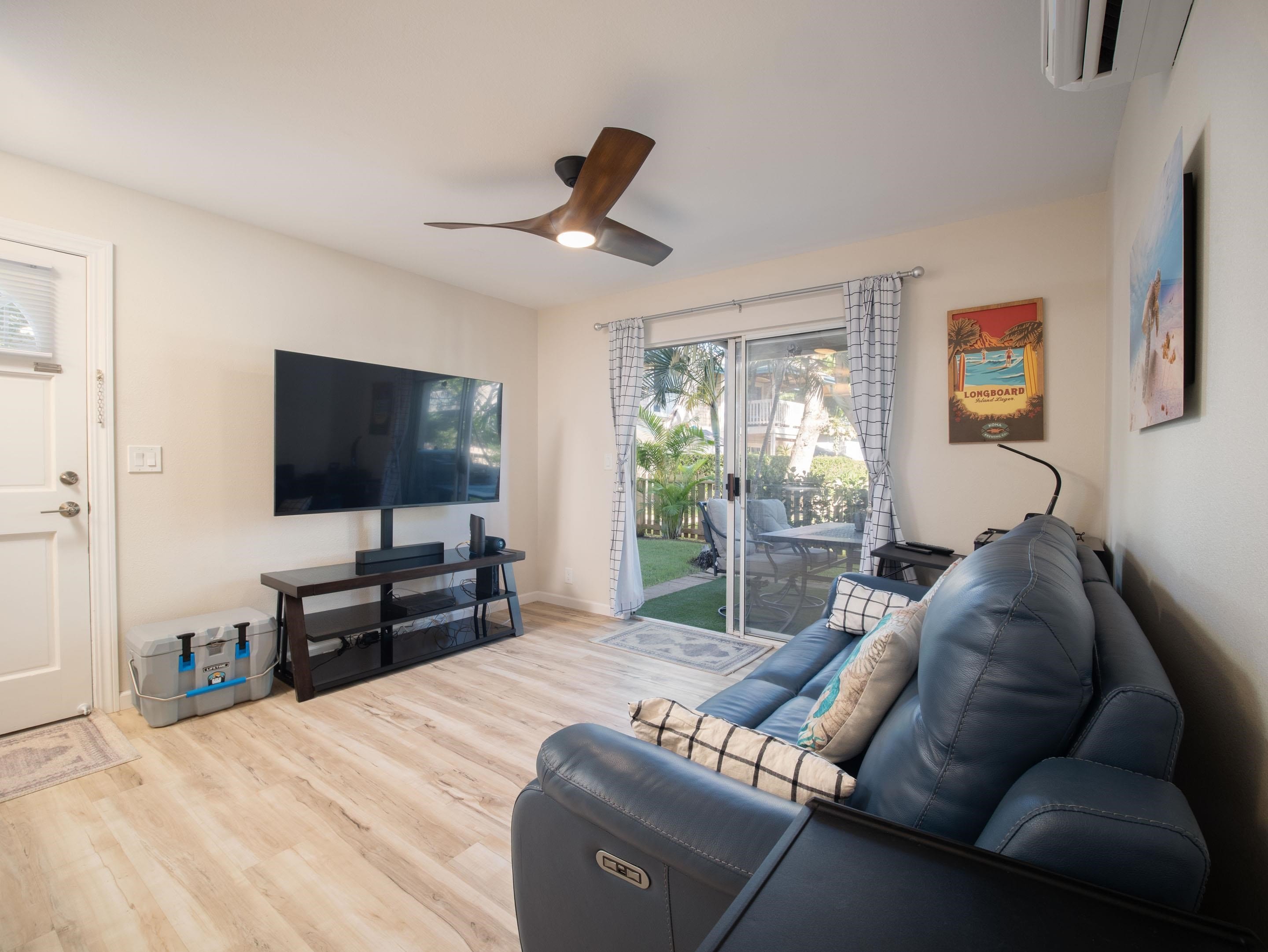 Welcome to your brand new 2-bedroom unit that is perfect for your primary residence, second home, or investment property. This fully renovated Southpointe unit offers a multitude of features, including 3 split AC units to keep you cool, a spacious grassy yard with irrigation, and a complete overhaul from the floors to the ceilings. Step inside and be amazed by the new luxury vinyl plank floors, solid wood cabinets, and stunning quartz countertops. Every detail has been carefully considered, from the light fixtures to the interior doors and plumbing fixtures - even the tub and surround are brand new. The stainless steel appliances, including a slide-in range, counter-depth refrigerator with water and ice maker, dishwasher and washer/dryer are all less than one year old. This beautifully furnished unit is ready for you to move in and start enjoying the impeccable finishes (yes quality furnishings you see in the photos come with the unit!). Additionally, its location within the complex offers tranquility as it is situated away from parking lots and streets. You'll have the convenience of two tandem parking spaces near the unit. Don't miss out on this incredible opportunity - schedule a showing today!
