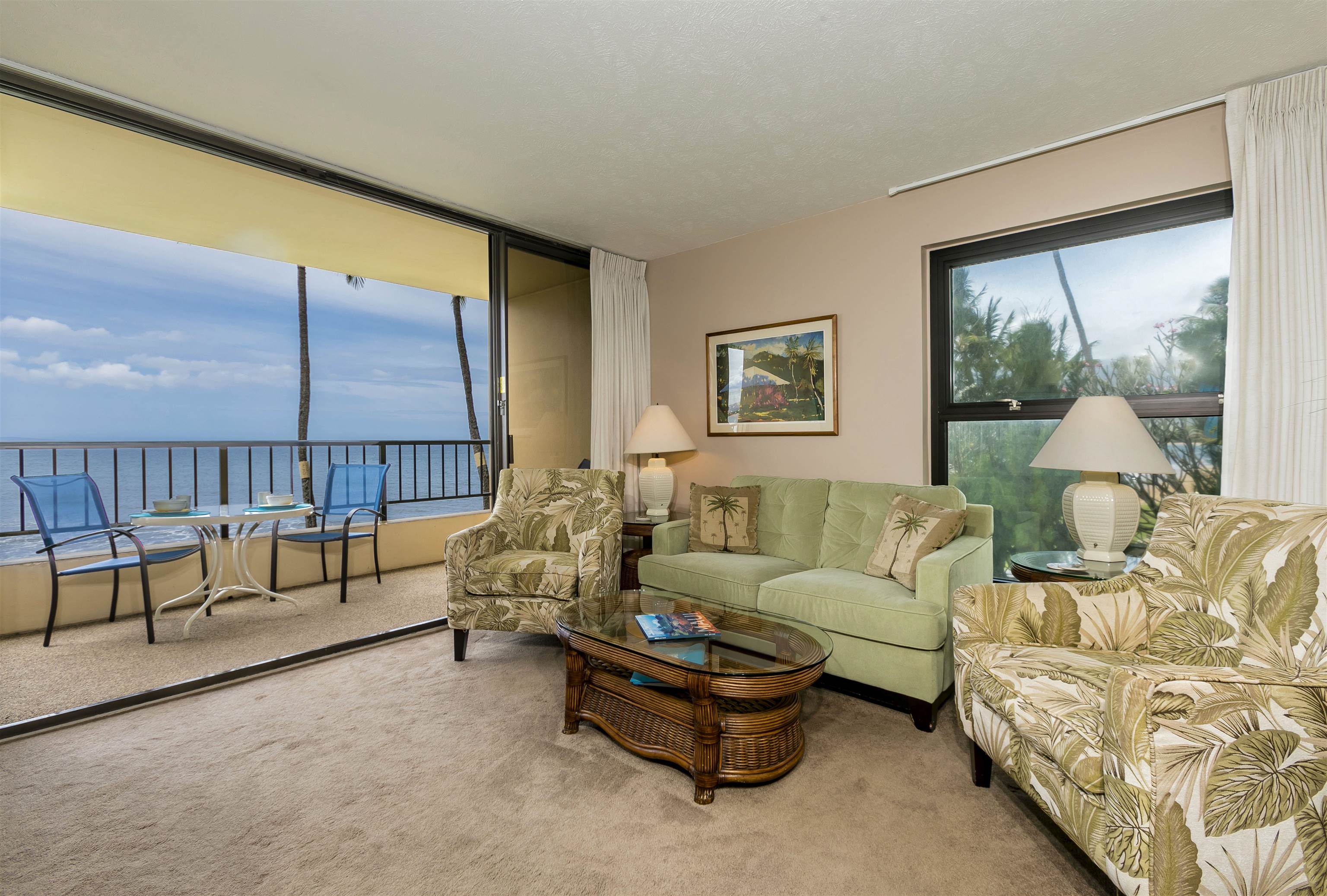 Oh what a view ….. Wonderful RARE opportunity to own a spectacular Beachfront Corner Unit with extra side windows – one of only 16 at Sugar Beach Resort. It is on the quiet end of the building and has quick level access to the condo (and beach) from the upper level of the parking garage. Watch the whales play in the deep blue Pacific Ocean from your private lanai while enjoying western exposure sunsets and your favorite beverages. Take a stroll on the longest white sand beach in all of Hawaii. Enjoy the golf putting area, Heated Pool, Sauna, and Jacuzzi while the smell from the BBQ’s drifts past you just steps from the sand. Sugar Beach Resort is “Pet Friendly.” All Roads lead to Sugar Beach Resort allowing quick access to the Airport, Lahaina, Kahului, and Wailea. Maintenance fees include “ALL Utilities” – Electricity, Central Air Conditioning, Sewer, Water, Garbage, Cable TV, Internet, Wi-fi, and FREE telephone to the entire U.S. and Canada. Sugar Beach Resort sits on 4.51 beautiful beachfront acres. #235 is sold Fully Furnished with Washer and Dryer and three lockable owner storage areas. Being an end unit, there is no path under your bedroom window, which adds to the peaceful setting. #235 is heavily booked by visitors from around the world and is ready to be your personal residence or vacation rental. It won’t last long!