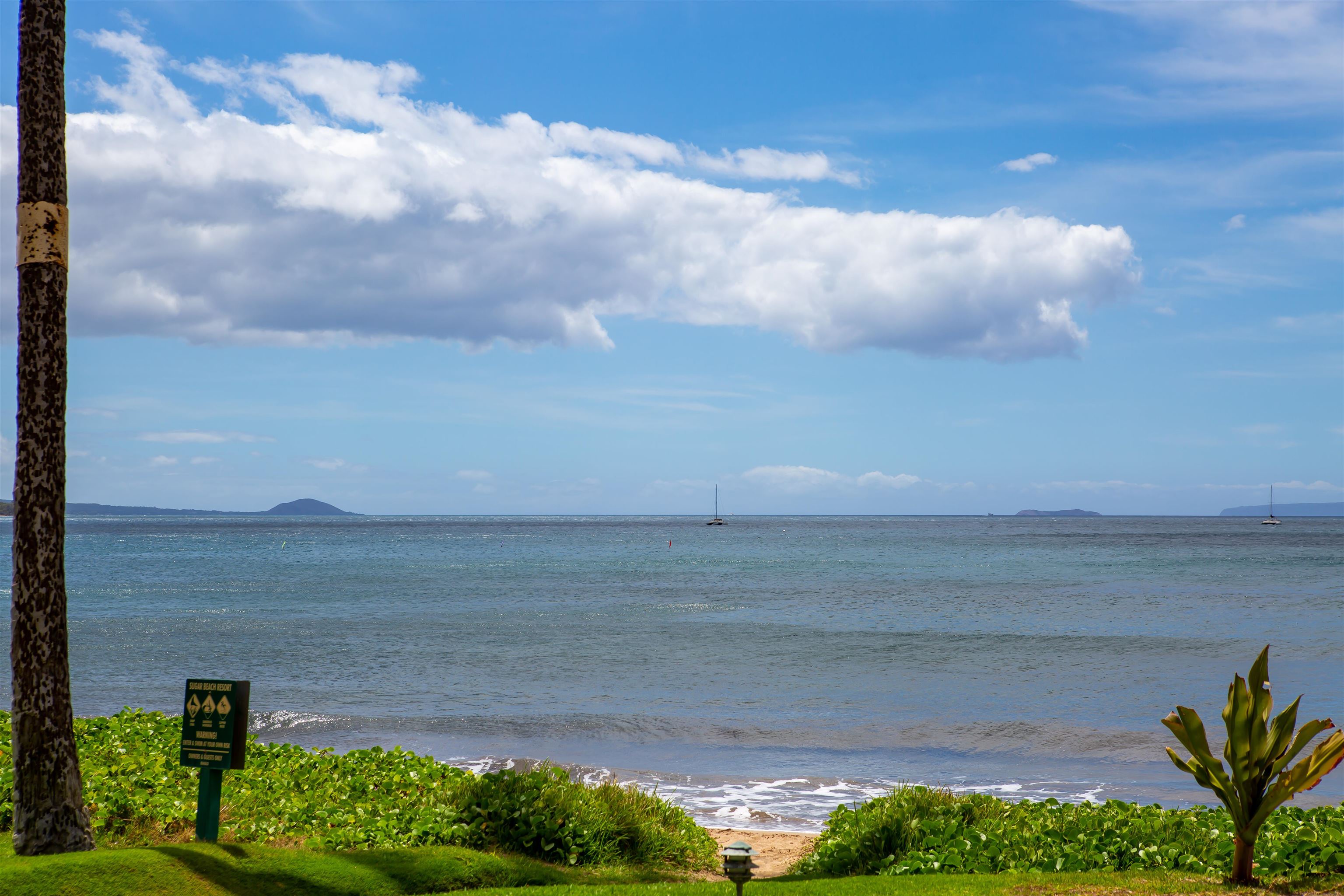 Another Fantastic Beachfront condo located at Sugar Beach Resort. Watch the whales play in the deep blue Pacific Ocean from your private lanai while enjoying western exposure sunsets and your favorite beverages. Take a stroll on the longest white sand beach in all of Hawaii. Enjoy the golf putting area, Heated Pool, Sauna, and Jacuzzi while the smell from the BBQ’s drifts past you just steps from the sand. Sugar Beach Resort is “Pet Friendly.” All Roads lead to Sugar Beach Resort allowing quick access to the Airport, Lahaina, Kahului, and Wailea. Maintenance fees include “ALL Utilities” – Electricity, Central Air Conditioning, Sewer, Water, Garbage, Cable TV, Internet, Wi-fi, and FREE telephone to the entire U.S. and Canada. Sugar Beach Resort sits on 4.51 beautiful beachfront acres. #409 is sold Fully Furnished with Washer and Dryer and three lockable owner storage areas. Being an end unit, there is no path under your bedroom window, which adds to the peaceful setting. #409 is heavily booked by visitors from around the world and is ready to be your personal residence or vacation rental. It won’t last long!